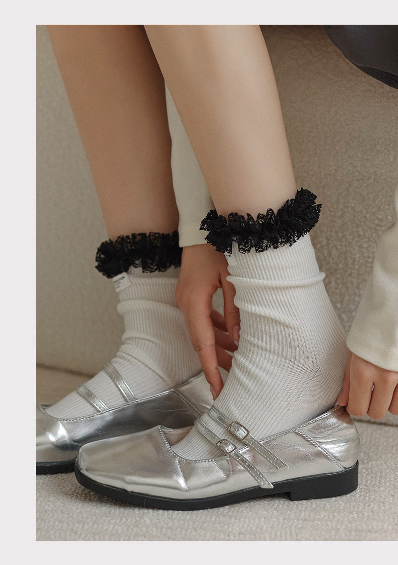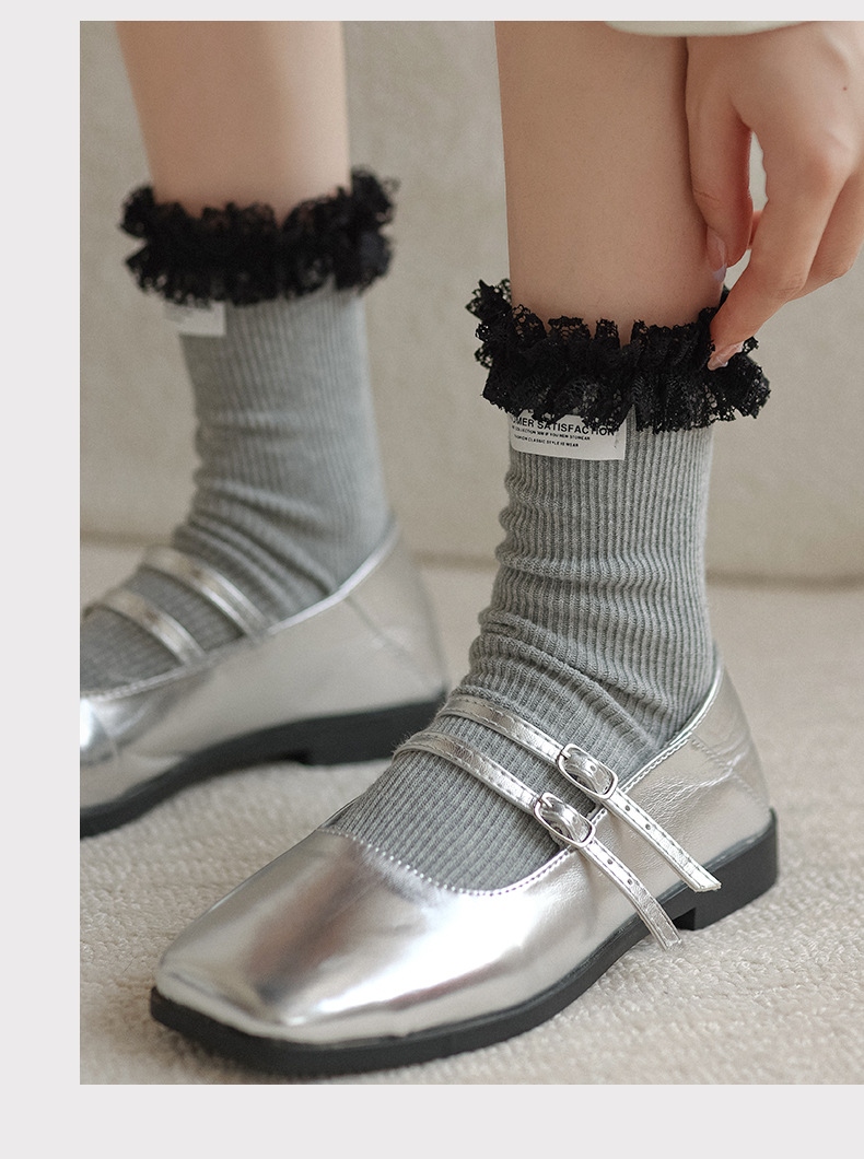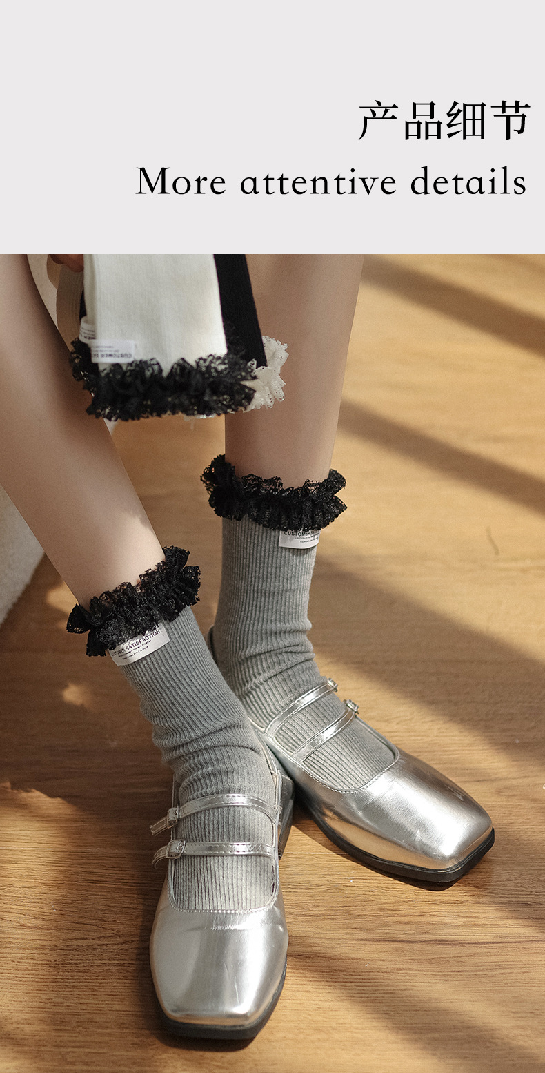 샤켈라 양말 여성 미드 튜브 양말 발레 바람 한국 레이스 올 매치 패션 천 표준 비디오 양말 세련된