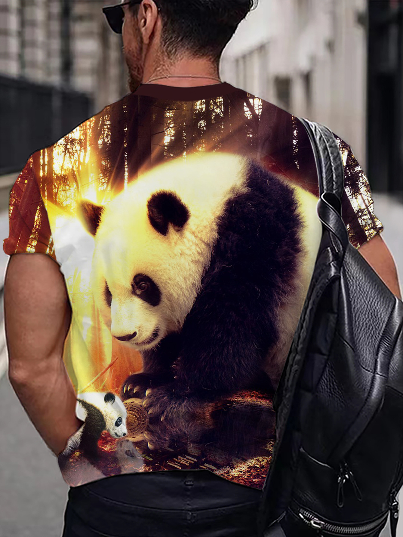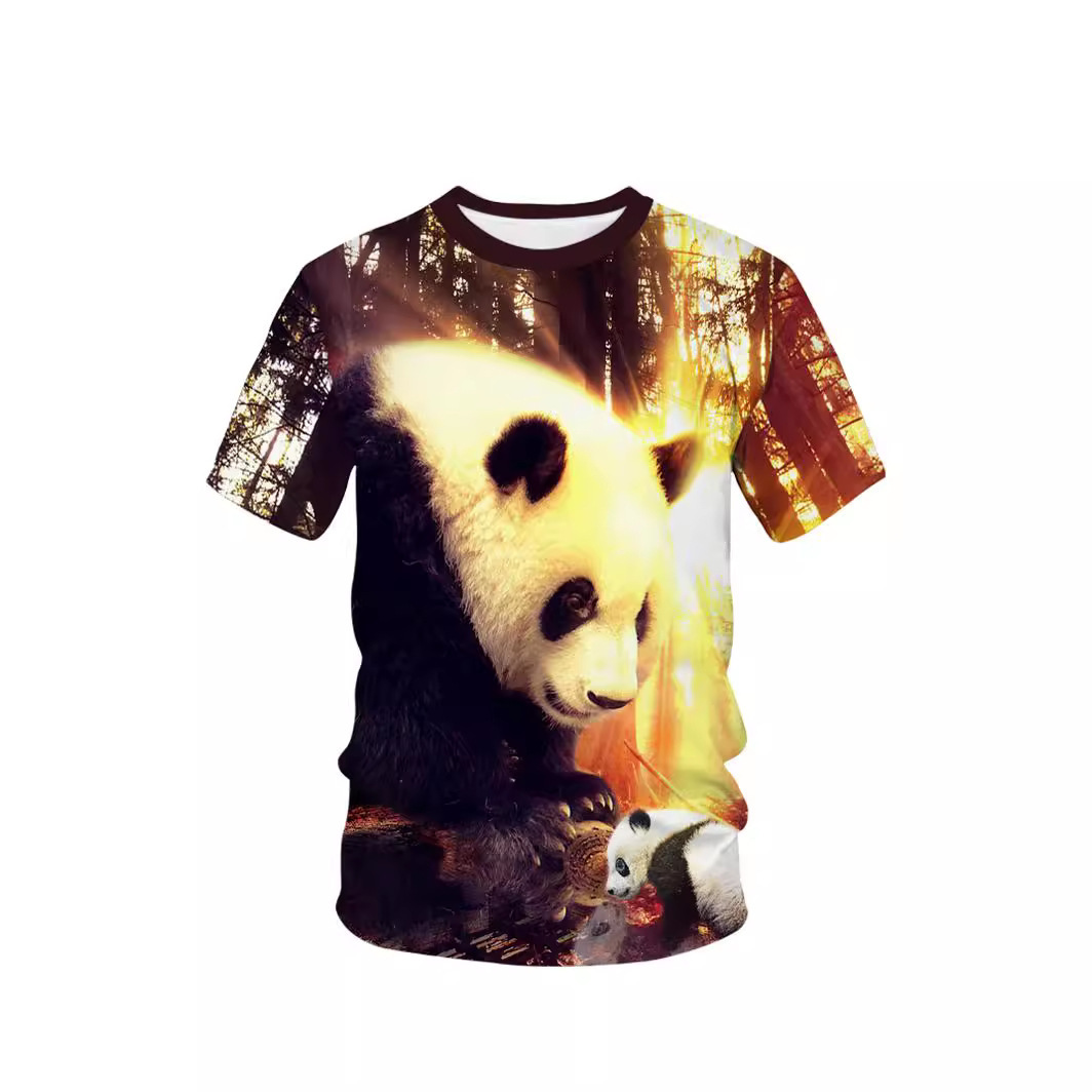 熊猫系列3D印花男式休闲短袖t恤 跨境新款男装T恤外贸货源批发