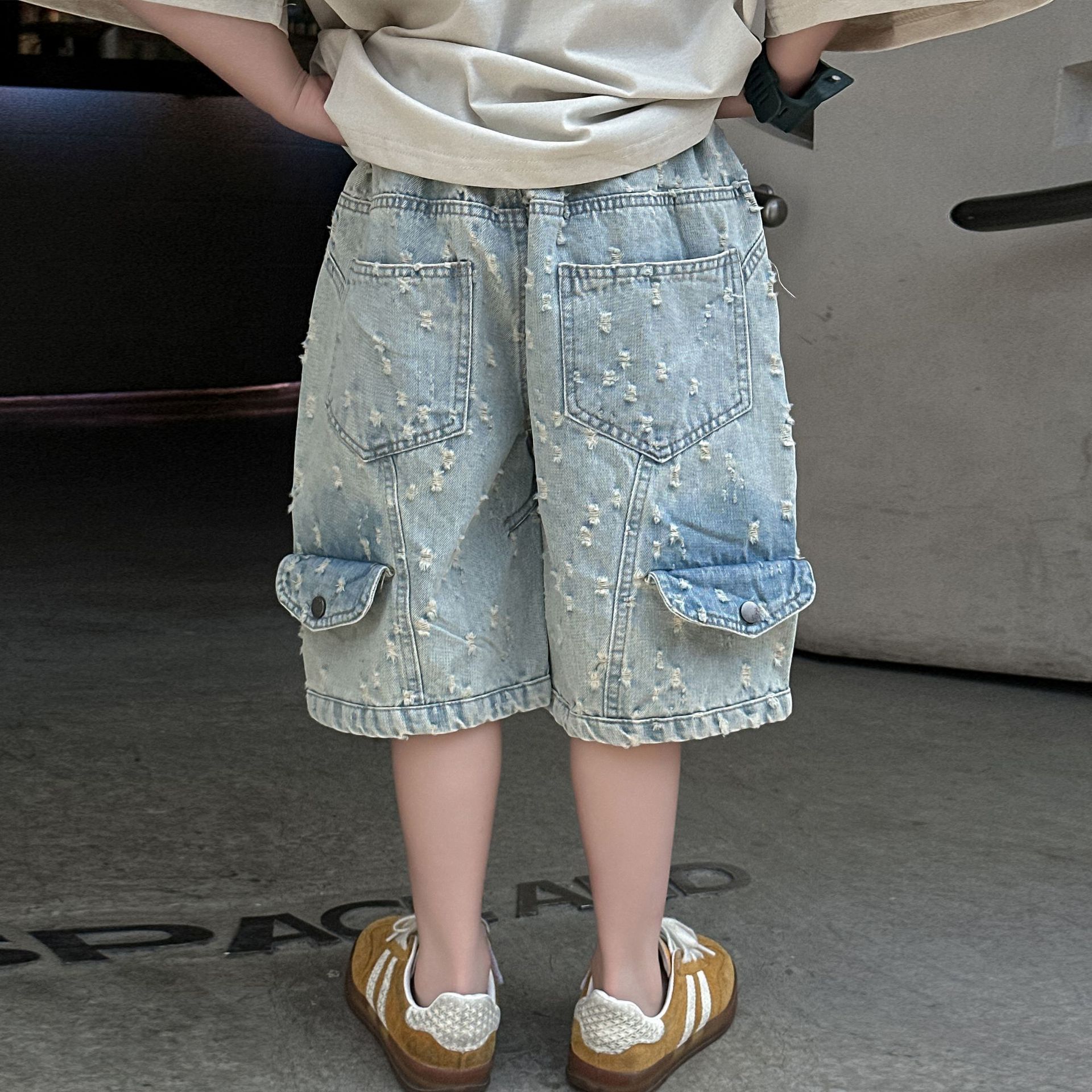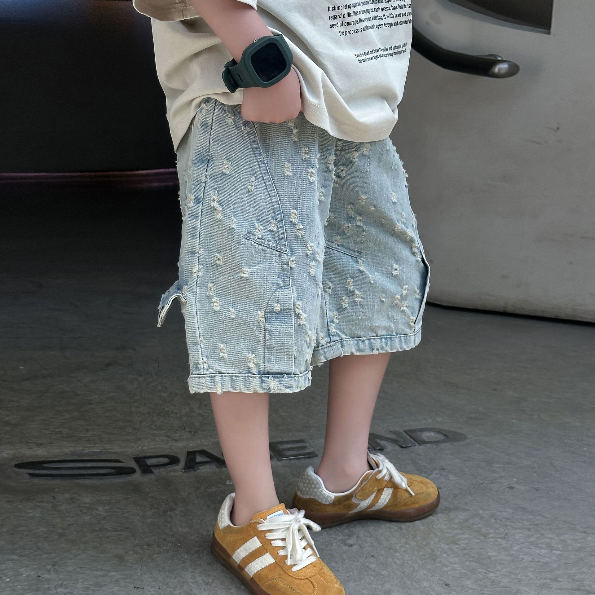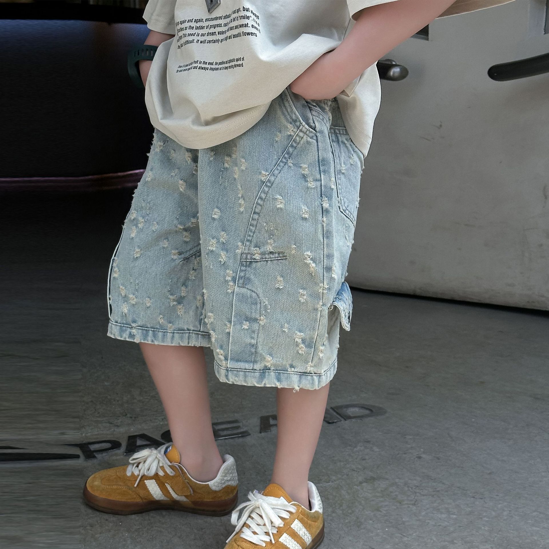 소년 여름 데님 반바지 2025 여름 새로운 어린이 느슨한 바지 유행 여름 패션 멋진 바지스토어 가기
