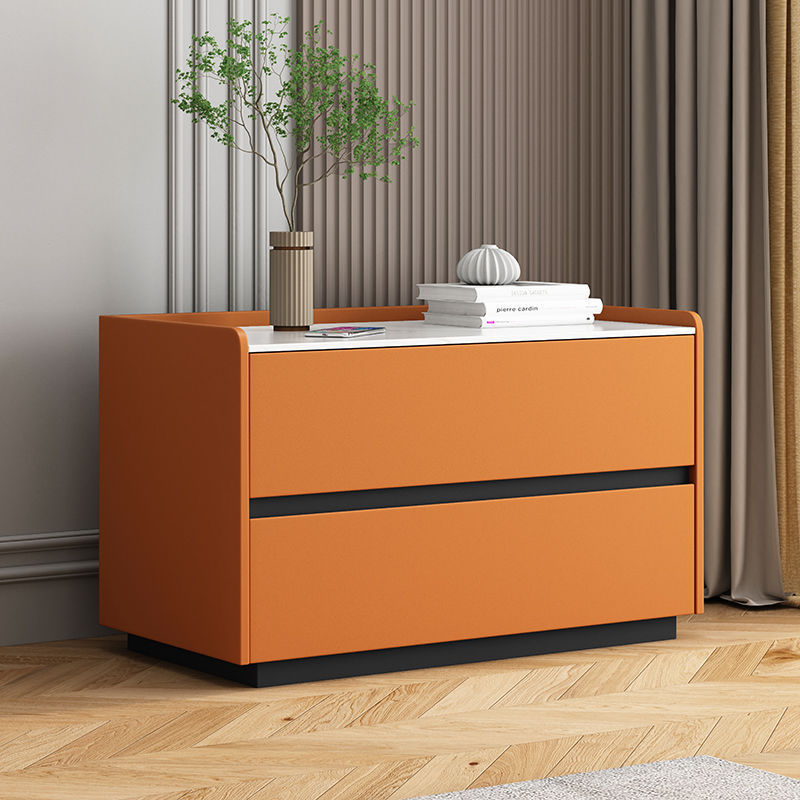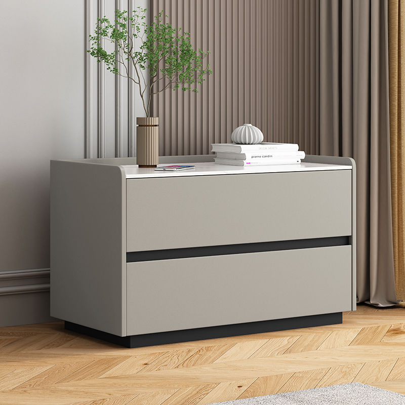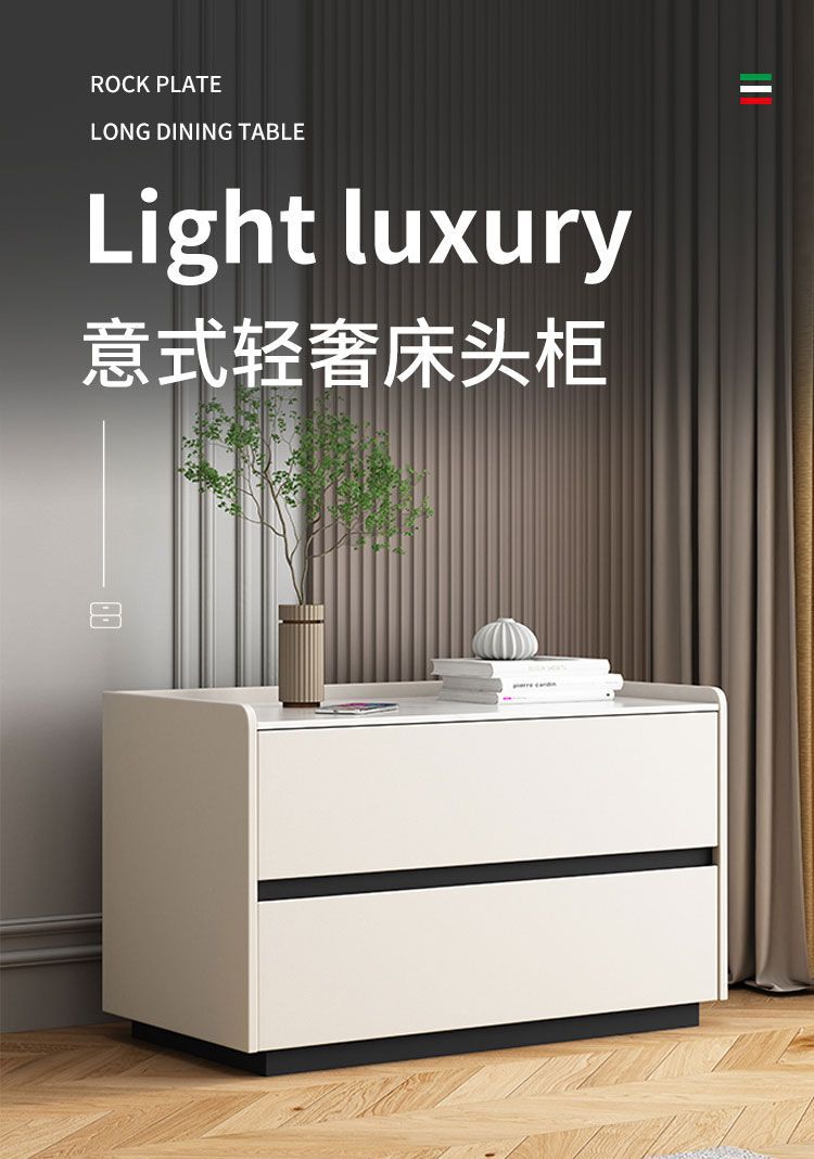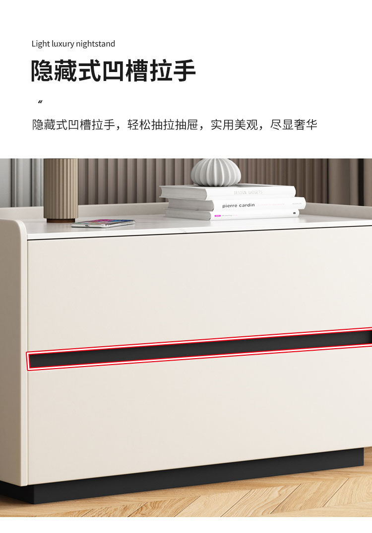 免安装大尺寸岩板床头柜台面简约轻奢风卧室北欧实木皮柜子