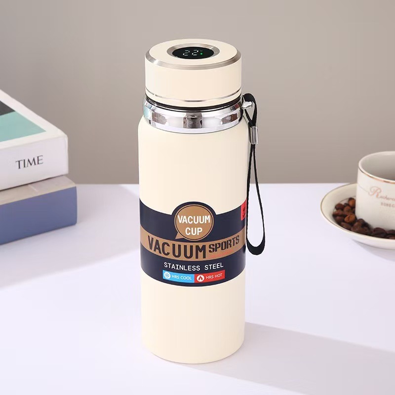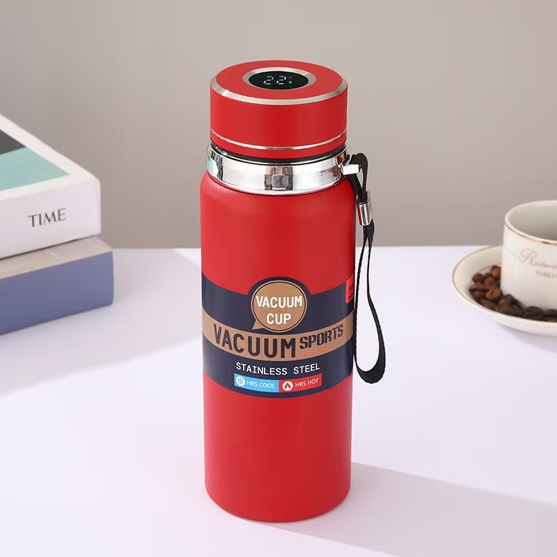 공장 직접 공급 316 스테인레스 스틸 워터 컵 로프 대용량 비즈니스 온도 표시 보온병 컵 등산 여행 슬링 포트