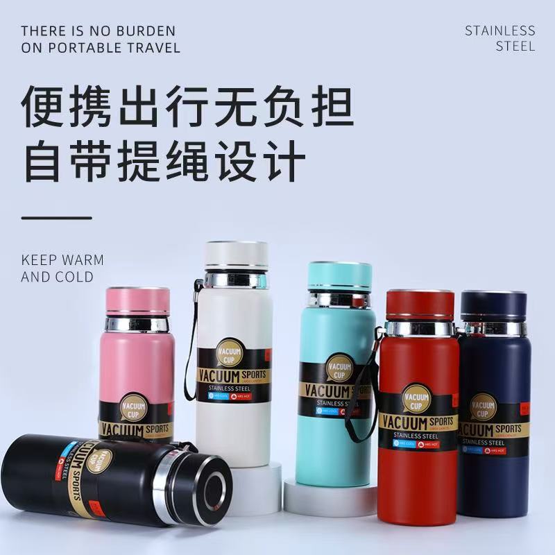 공장 직접 공급 316 스테인레스 스틸 워터 컵 로프 대용량 비즈니스 온도 표시 보온병 컵 등산 여행 슬링 포트스토어 가기