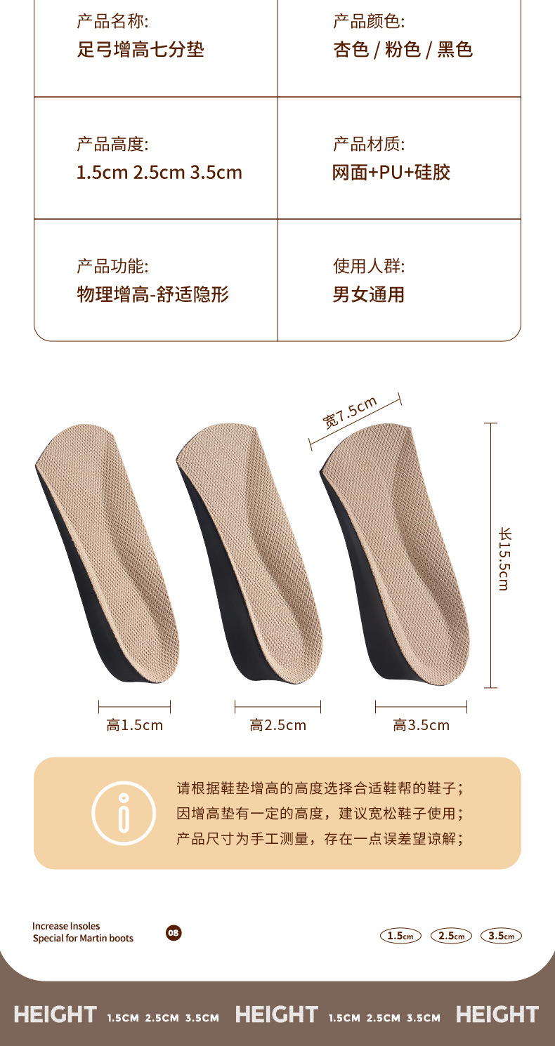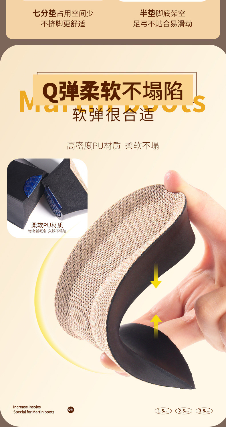 남녀공용 PU 투명 내부 강화 깔창, 하프패드 마틴부츠, 스포츠 충격흡수, 발이 피곤하지 않은, 작은 사람들을 위한 7점 아치패드스토어 가기