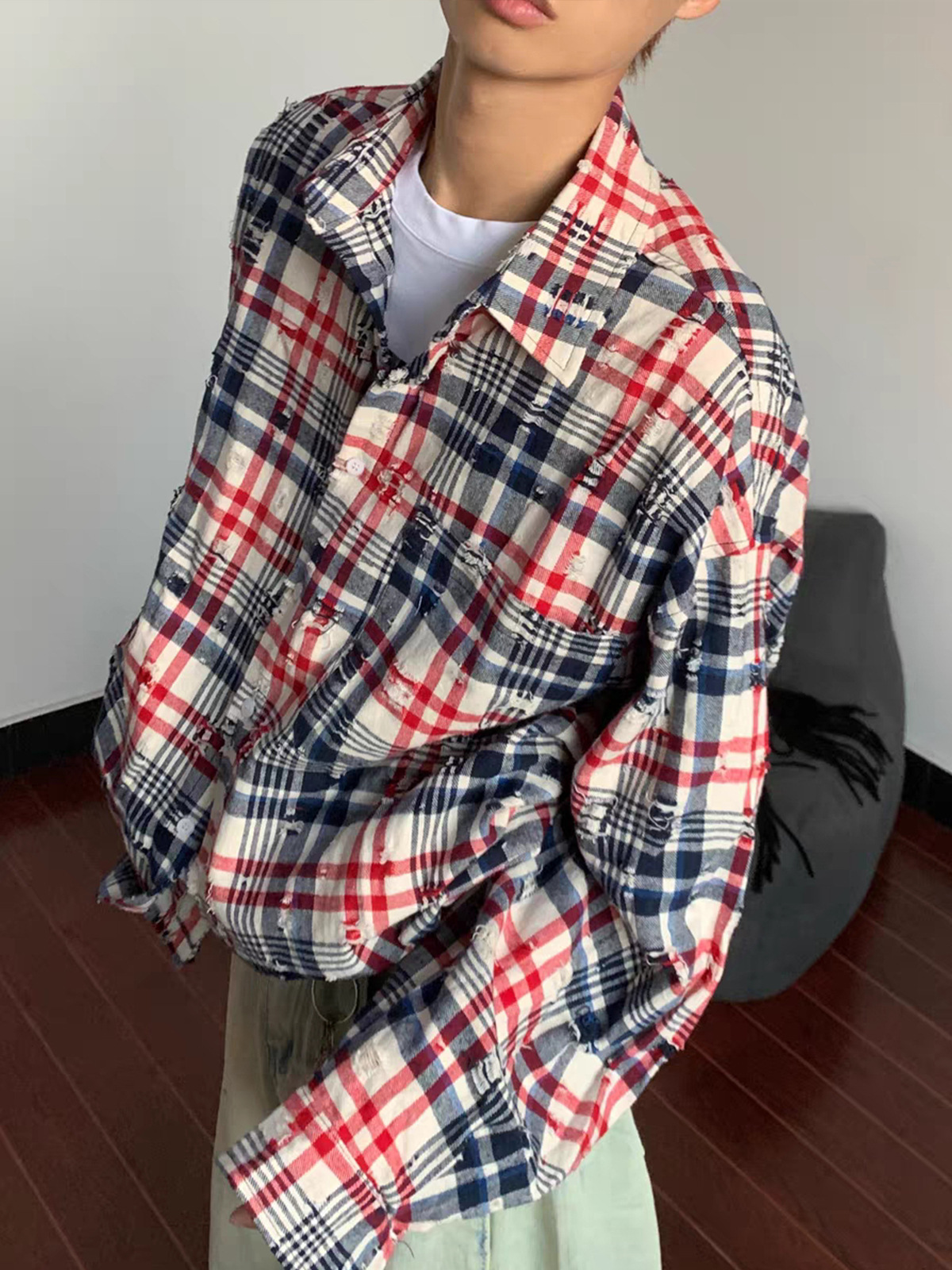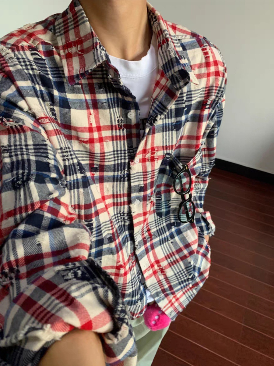 아메리칸 스타일 레트로 홀 꽃 셔츠 남자의 가을 디자인 색상 매칭 스트라이프 긴팔 셔츠 Bf 남자 친구 스타일 탑스토어 가기