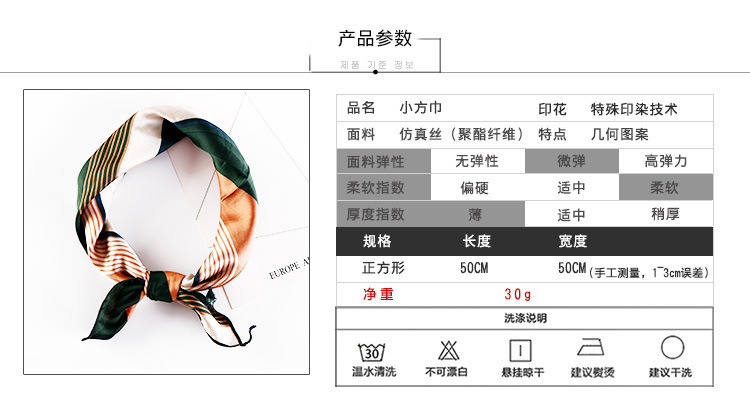 독립 포장 50X50cm 작은 실크 스카프 패션 올 매치 가을 장식 작은 사각형 스카프 작은 스카프 한국 버전스토어 가기