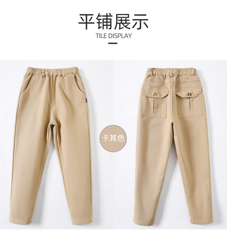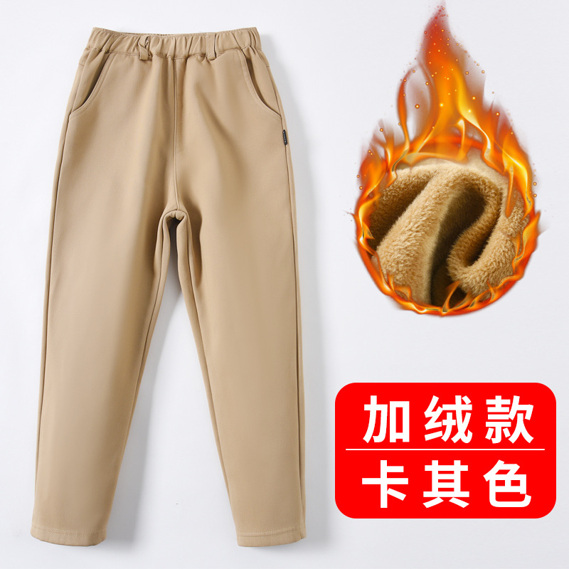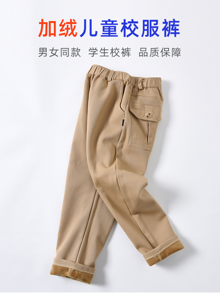 초등 및 중등 학생을위한 카키 벨벳 교복 바지 남성과 여성을위한 가을, 겨울 캐주얼 바지 정장 바지 순면 어린이 교복 바지