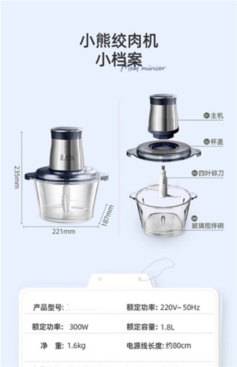 전기 고기 분쇄기, 다기능 야채 분쇄기, 가정용 소형 완전 자동 대용량 식품 보충 기계, 상업용 믹서스토어 가기