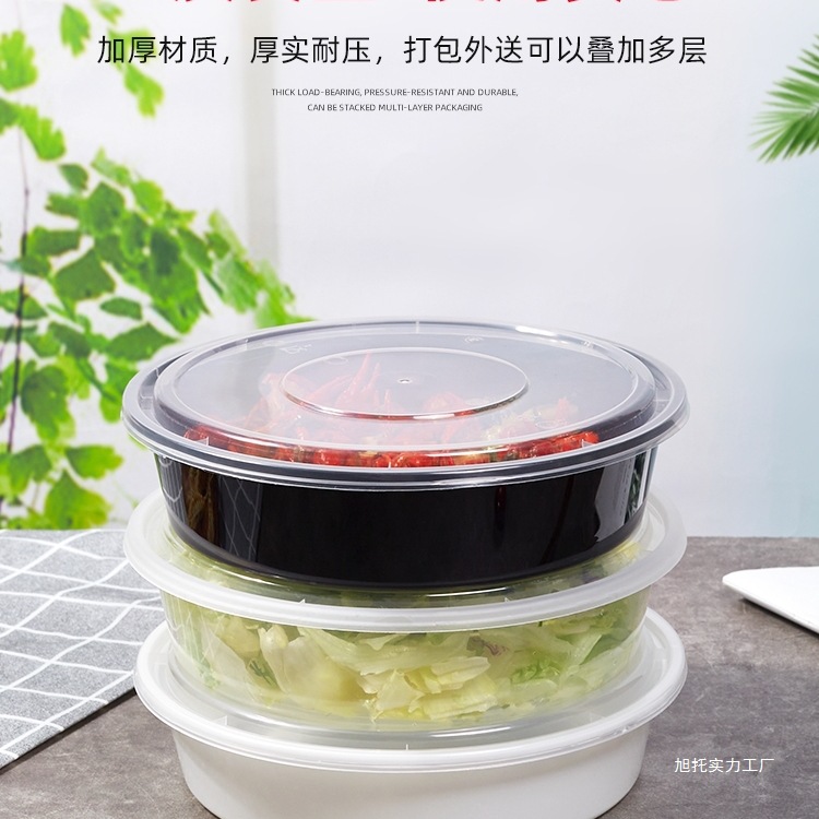 투명 원형 1000ML 일회용 도시락 상자 뚜껑이 있는 두꺼운 플라스틱 포장 테이크아웃 도시락 패스트 푸드 도시락 수프 그릇스토어 가기