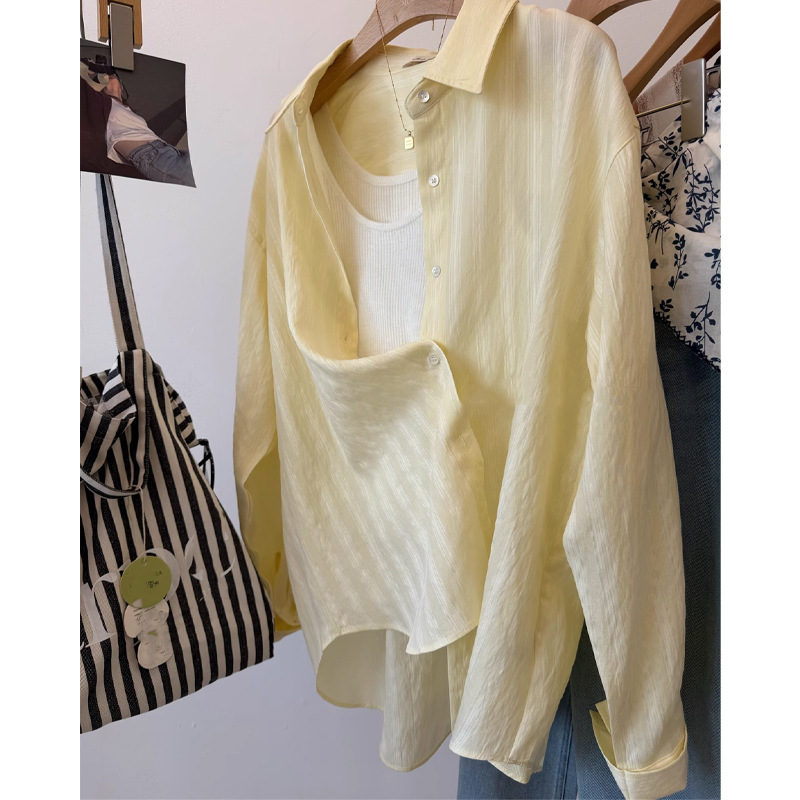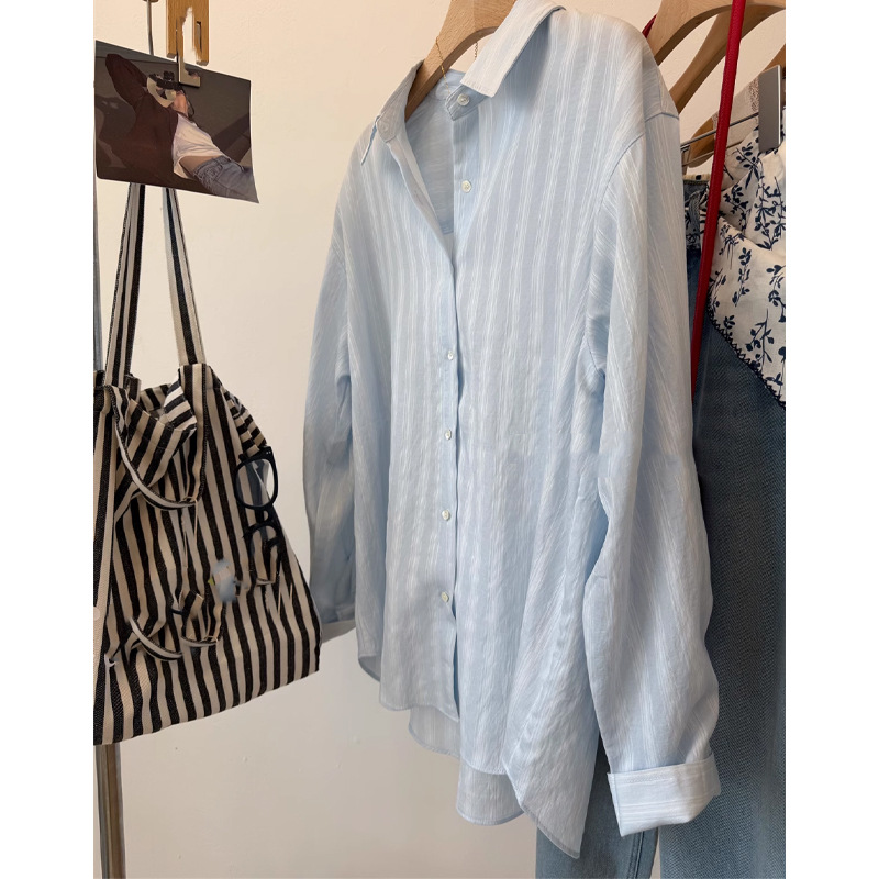 2 색 수직 질감 긴팔 셔츠 여성의 2025 느슨한 우아한 하이 엔드 셔츠스토어 가기