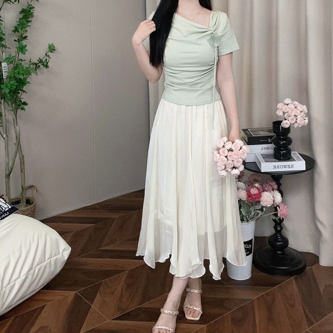 민트 맘보 순수한 욕망 나비 스트랩 슬란 트 어깨 달콤하고 매운 최고 여성의 2025 년 여름 프랑스 새로운 도착 불규칙한 슬림 핏