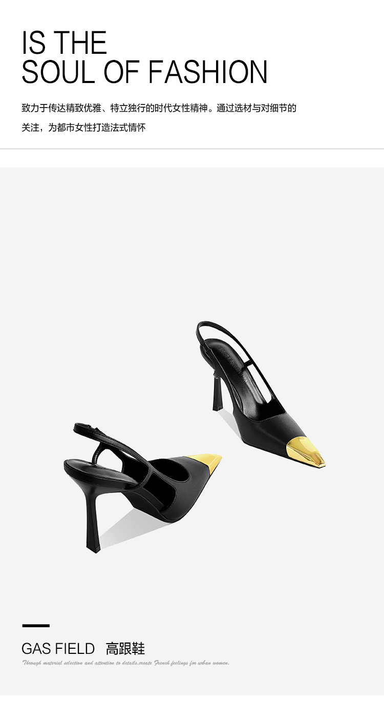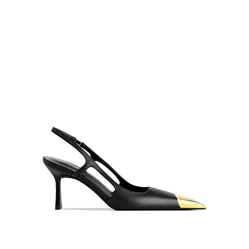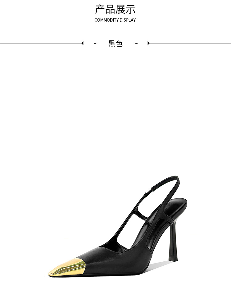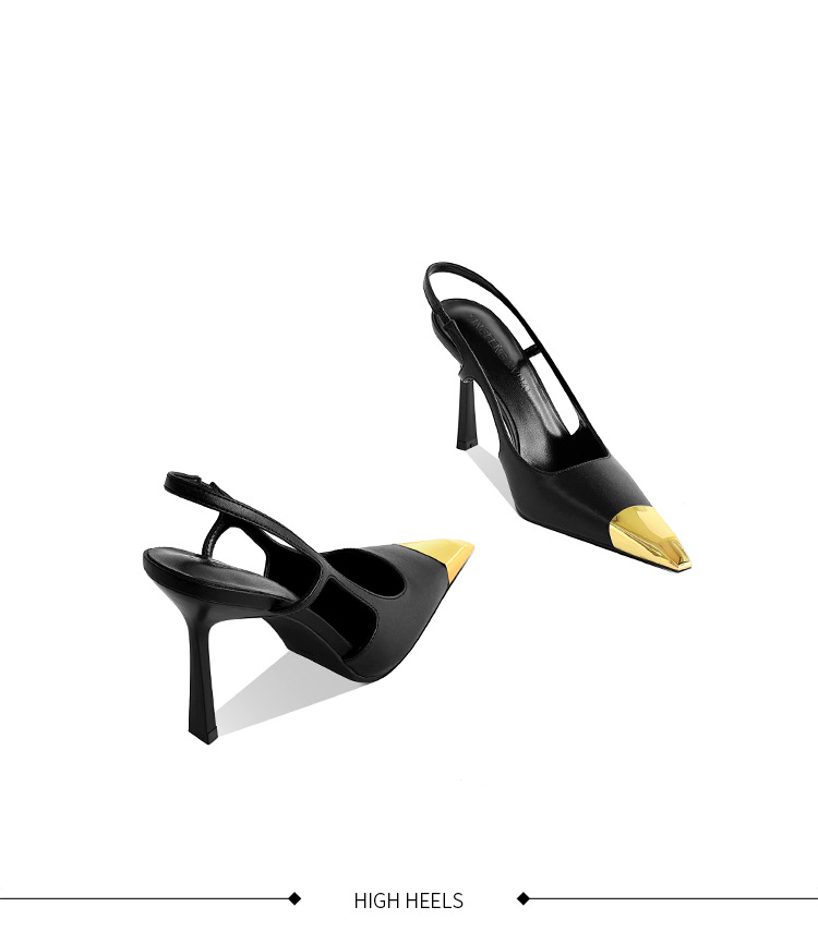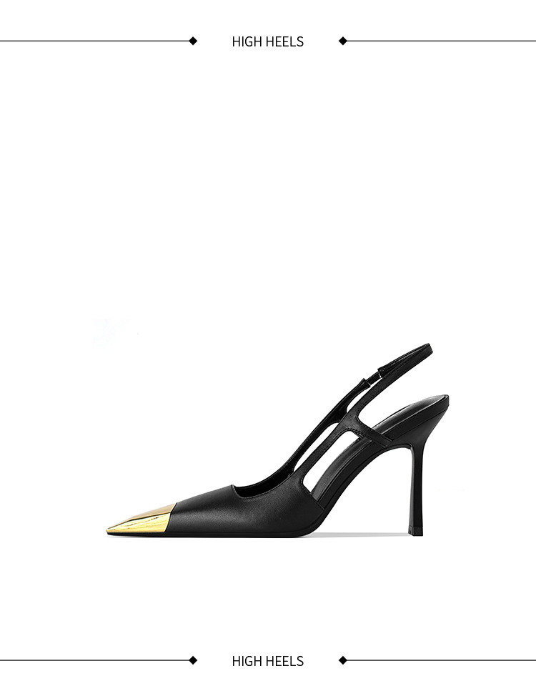 [재고 있음] 메탈 아이템 하이힐, 하이엔드 펌프스, 가죽 샌들, 여성용 슬리퍼, 뒷부분이 빈 스퀘어 토 슈즈스토어 가기