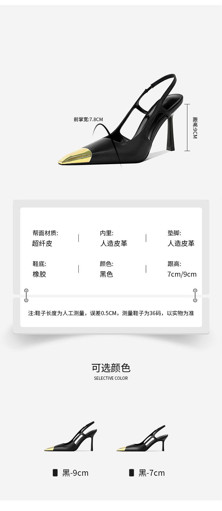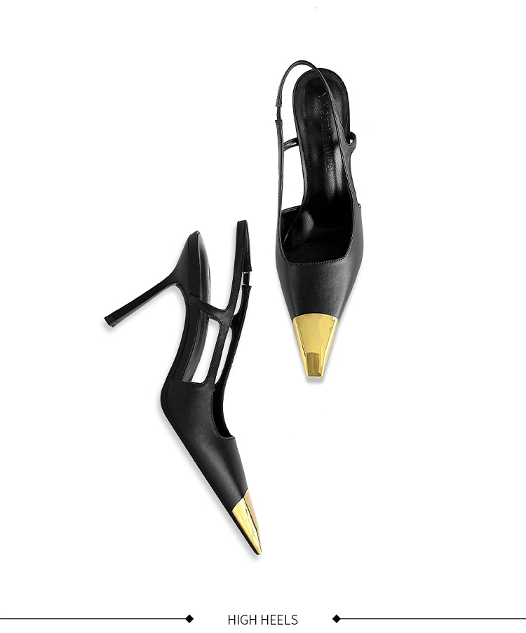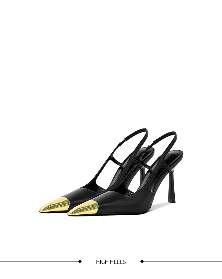 [재고 있음] 메탈 아이템 하이힐, 하이엔드 펌프스, 가죽 샌들, 여성용 슬리퍼, 뒷부분이 빈 스퀘어 토 슈즈