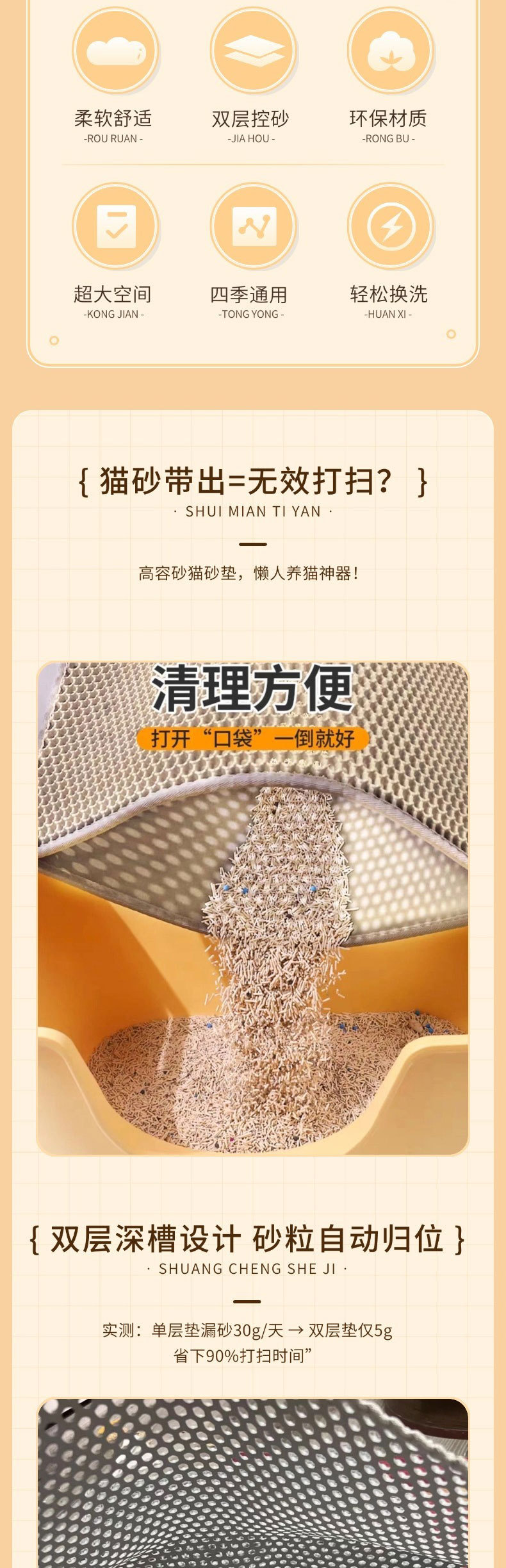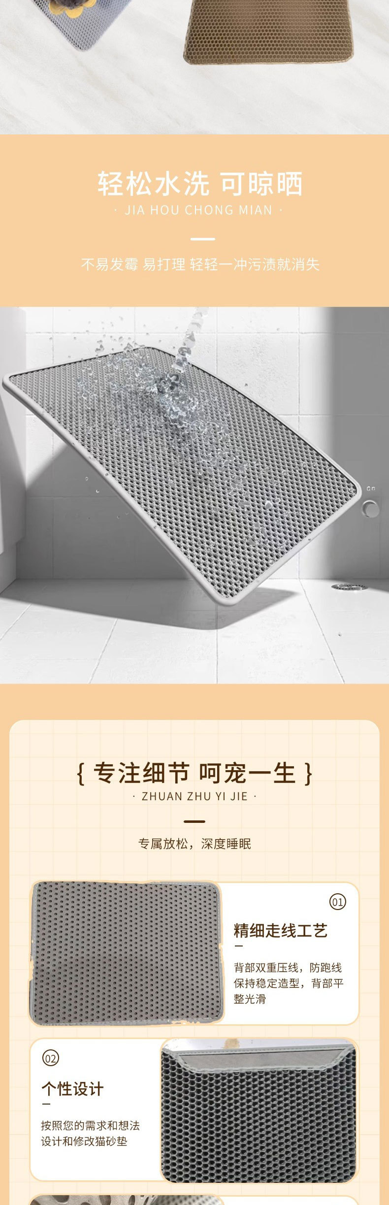 고양이 머리 모양의 고양이 쓰레기 매트는 고양이 쓰레기 상자에서 고양이 쓰레기를 방지하고, 이중층 필터링된 모래 누출 고양이 매트는 물에 튀는 것을 방지하고 세탁 가능하며 내마모성이 있습니다.