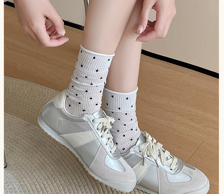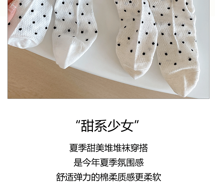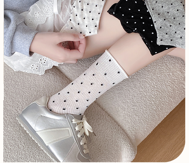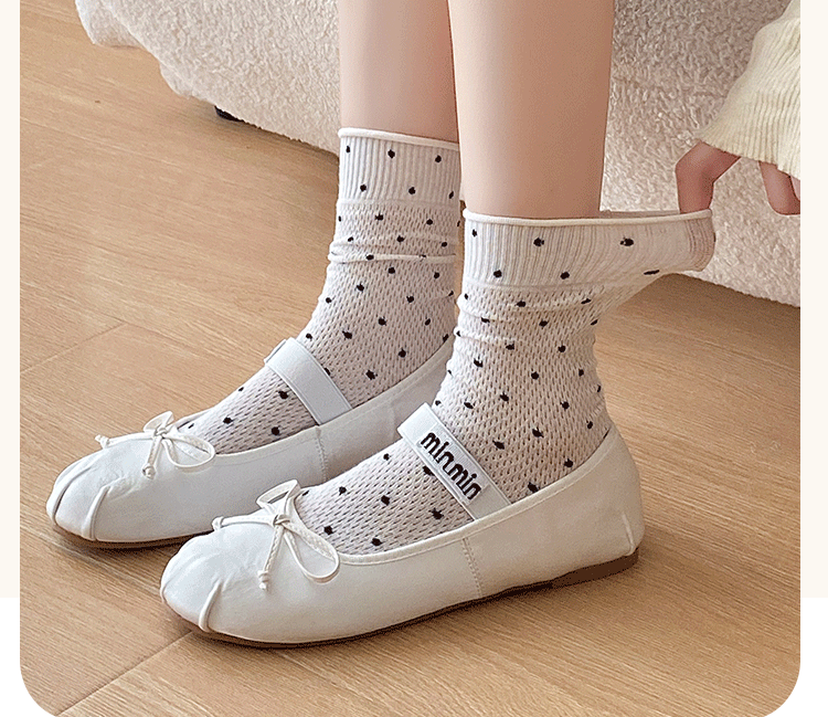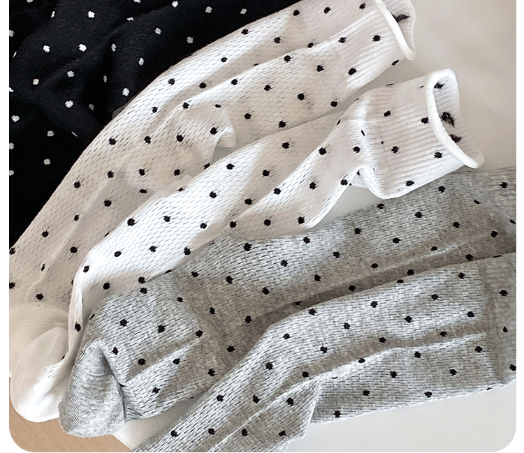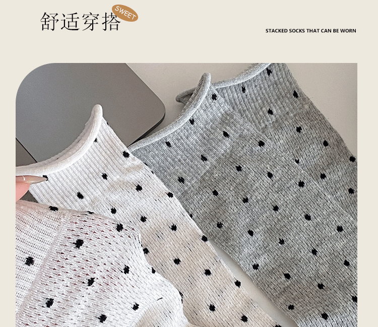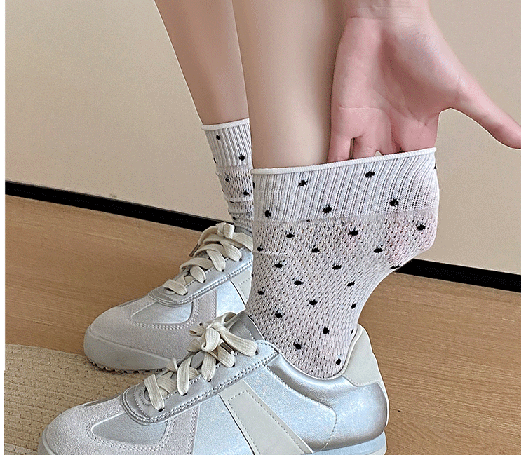 한국식 중형관 양말 순면 Poll Dot Mesh 통기성 컬 여성용 양말 사이버 레드 도트 여름 동대문 회색 양말