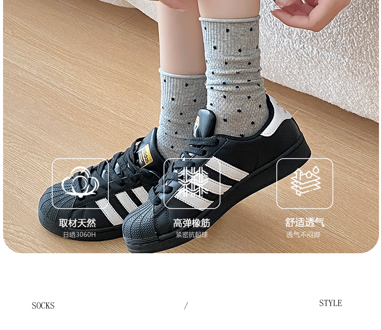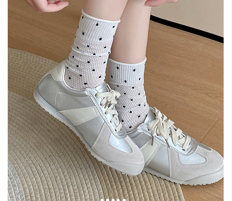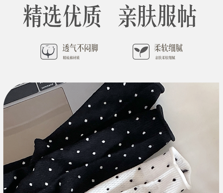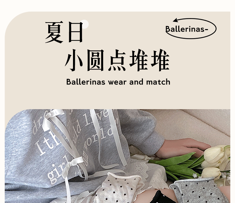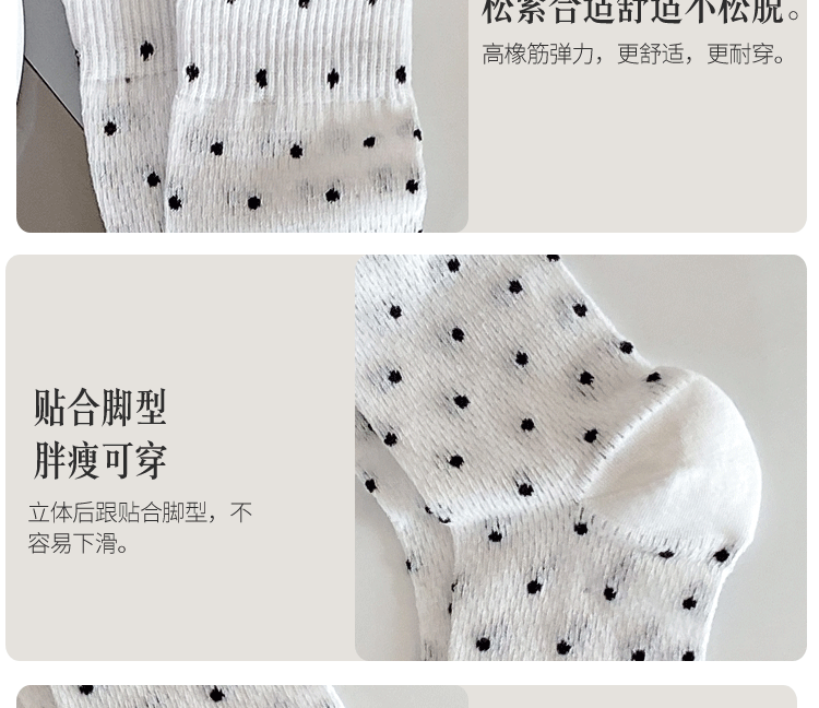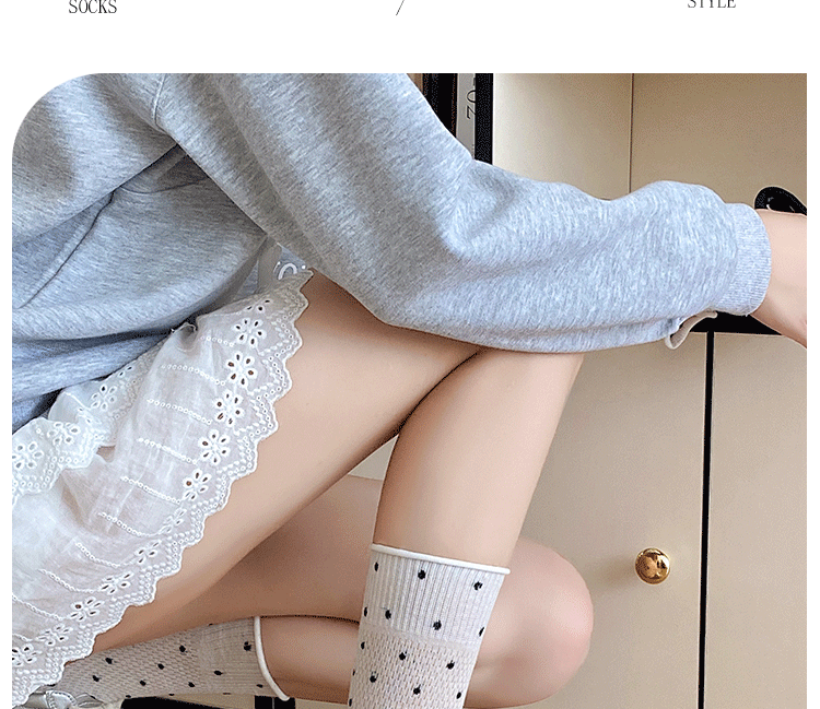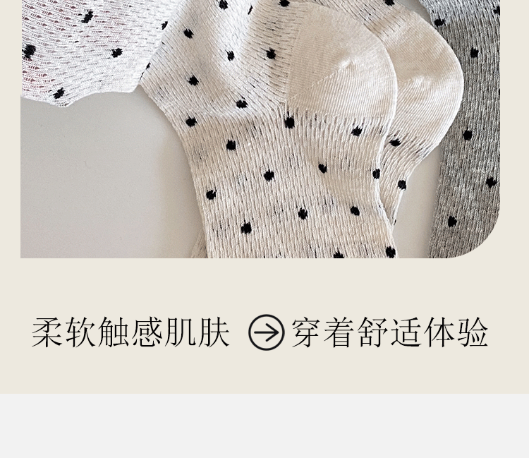 한국식 중형관 양말 순면 Poll Dot Mesh 통기성 컬 여성용 양말 사이버 레드 도트 여름 동대문 회색 양말