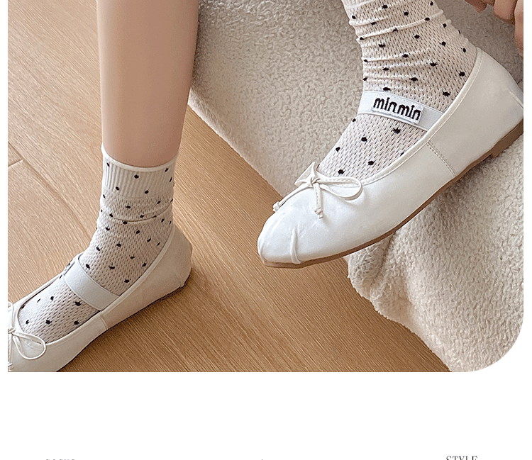 한국식 중형관 양말 순면 Poll Dot Mesh 통기성 컬 여성용 양말 사이버 레드 도트 여름 동대문 회색 양말스토어 가기