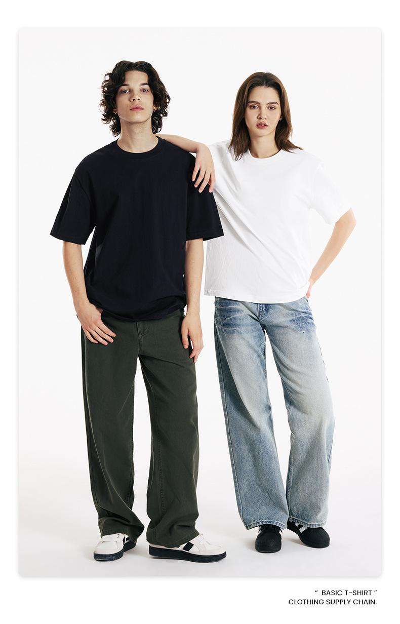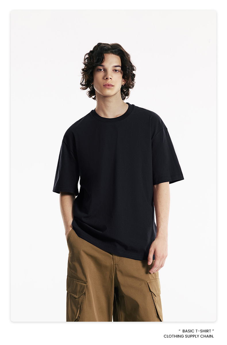 국경 간 유럽과 미국의 일반 단색 반팔 남성 티셔츠 Amazon 핫 스타일 230g 순수 코튼 루즈 라운드 넥 남성 반팔스토어 가기