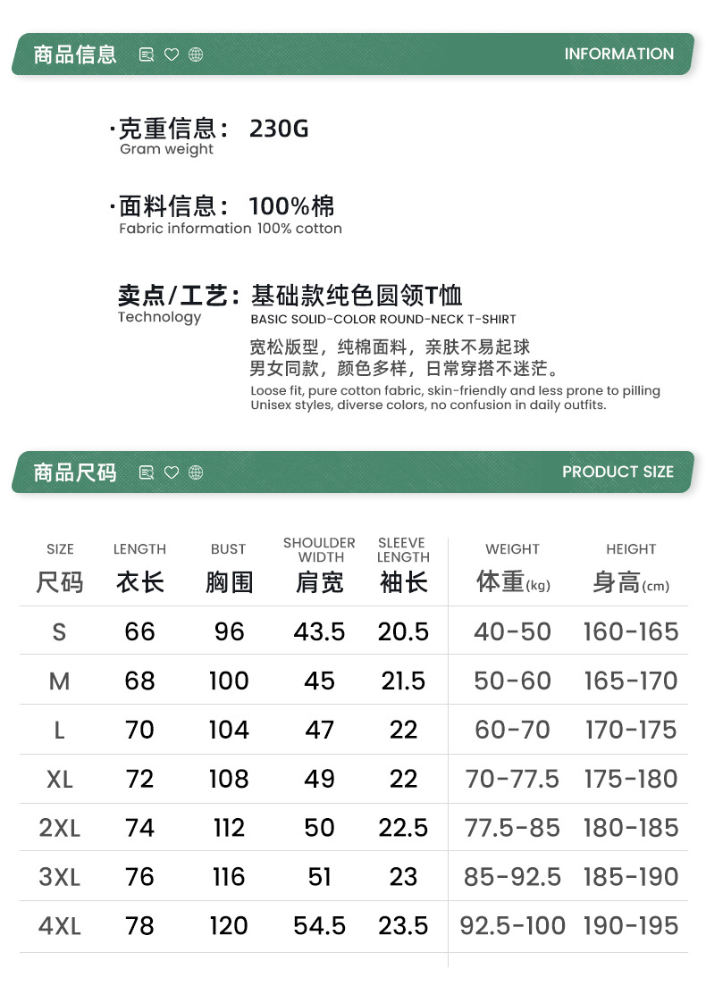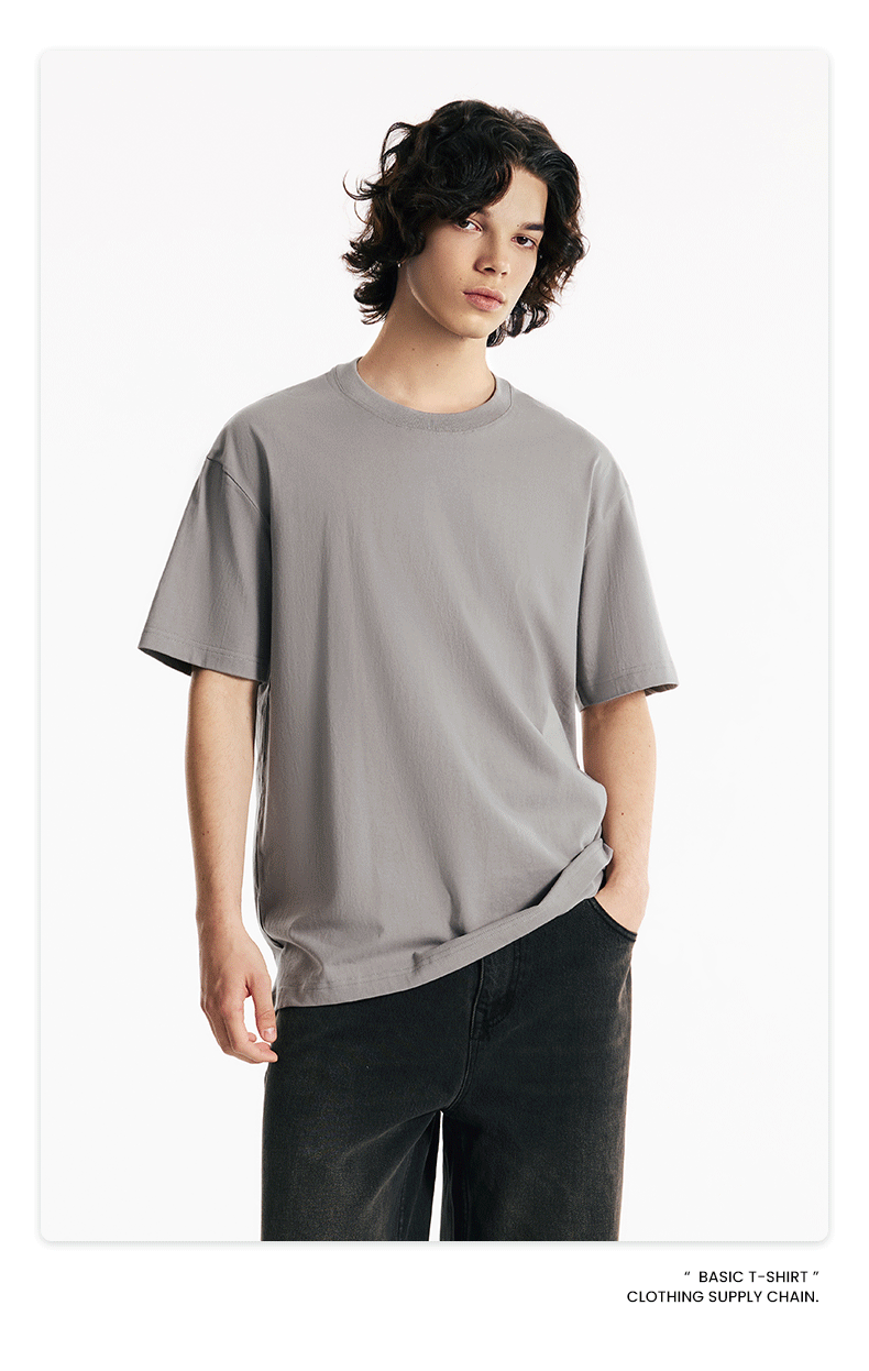 국경 간 유럽과 미국의 일반 단색 반팔 남성 티셔츠 Amazon 핫 스타일 230g 순수 코튼 루즈 라운드 넥 남성 반팔