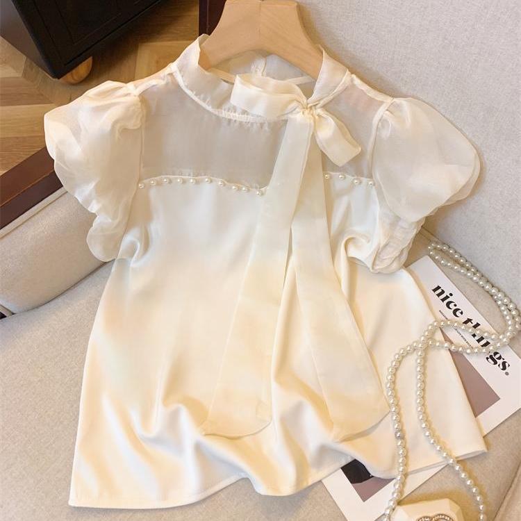 샤넬 스타일 활 리본 셔츠 여성의 여름 빛 사틴 탑 세련된 아름다운 쉬폰 셔츠
