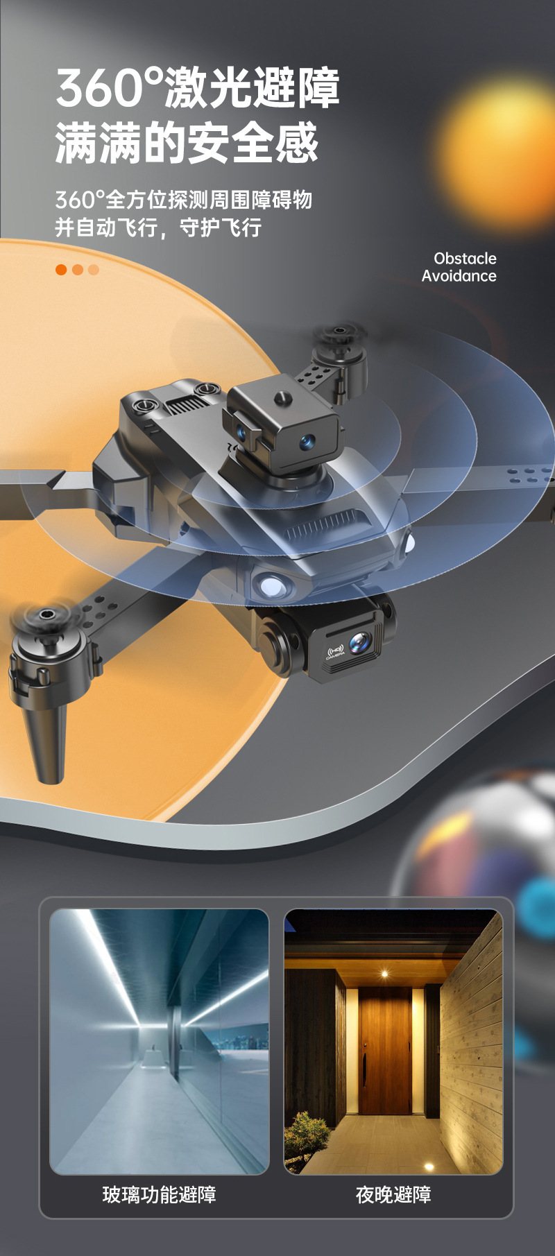 • M3--HD 듀얼 카메라 [360°장애물 회피 보호】조명 모델-회색