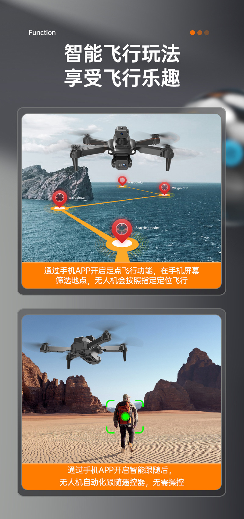• M3-HD 듀얼 카메라 [360°장애물 회피 보호】-회색