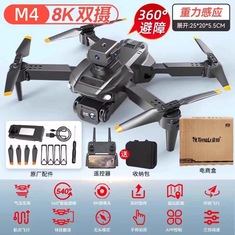• M4 원격 제어 항공기 HD 듀얼 카메라 [8K 제스처 사진 + 앱 제어 + 호버] 블랙