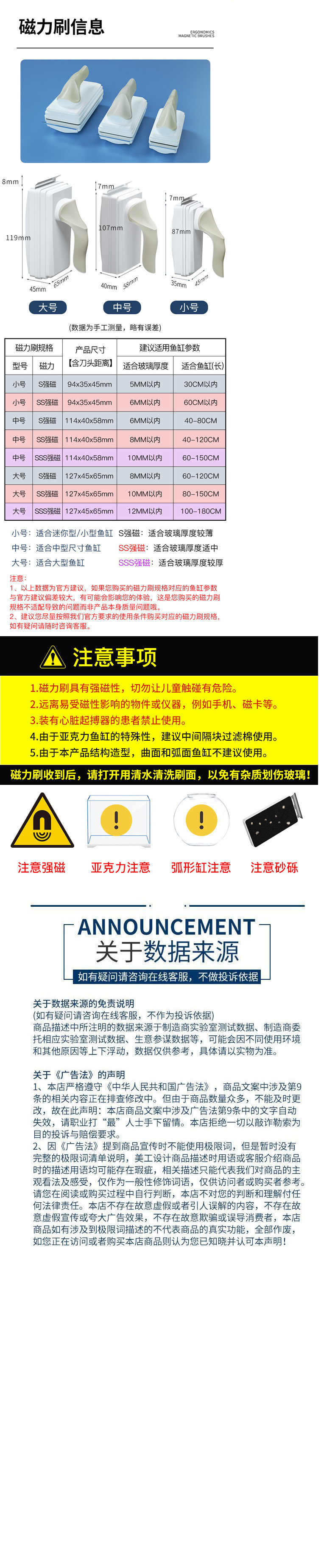 • 중형 일반 자석 [중형 수조에 적합/초박형 유리 두께 필요]
