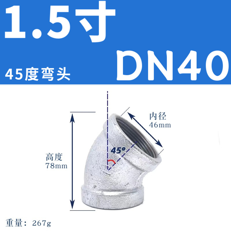 • 45도 엘보 DN40【1.5inch】국가 표준 압력 베어링 16kg