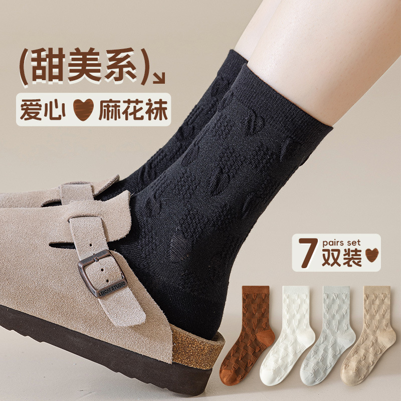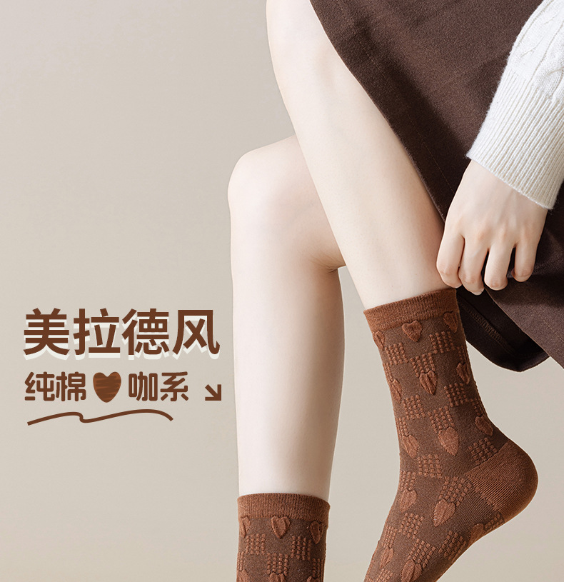 여성용 종아리 양말 단색 단순 탈취제 사랑 양각 양말 2025 새로운 스타일 원피스 도매 Zhuji 공장스토어 가기