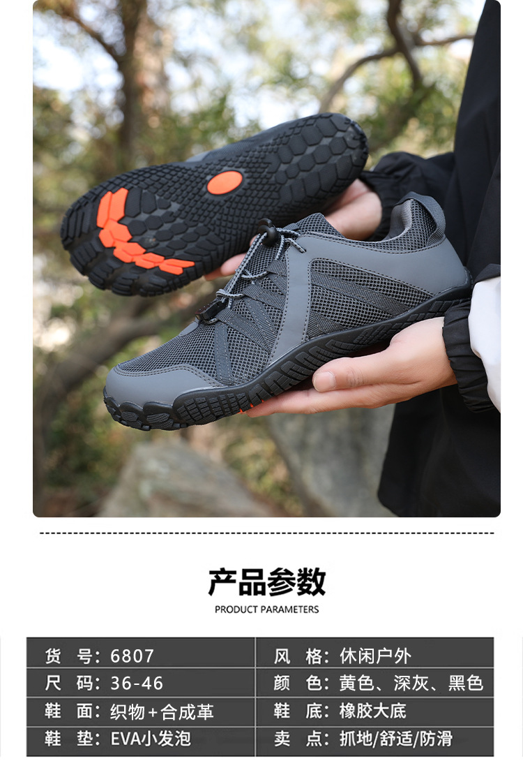 국경을 넘는 새로운 야외 다섯 손가락 대형 하이킹 미끄럼 방지 통기성 내마모성 웨이딩 부츠 러닝 스포츠 로우 컷 하이킹 신발