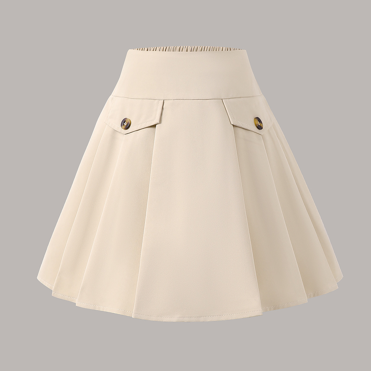 유럽과 미국 스타일의 여아 정장 스커트, 여름 주름 장식 아동용 하이웨이스트 A라인 짧은 스커트, 카키색 넓은 밑단 여아 스커트스토어 가기