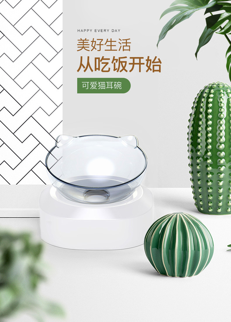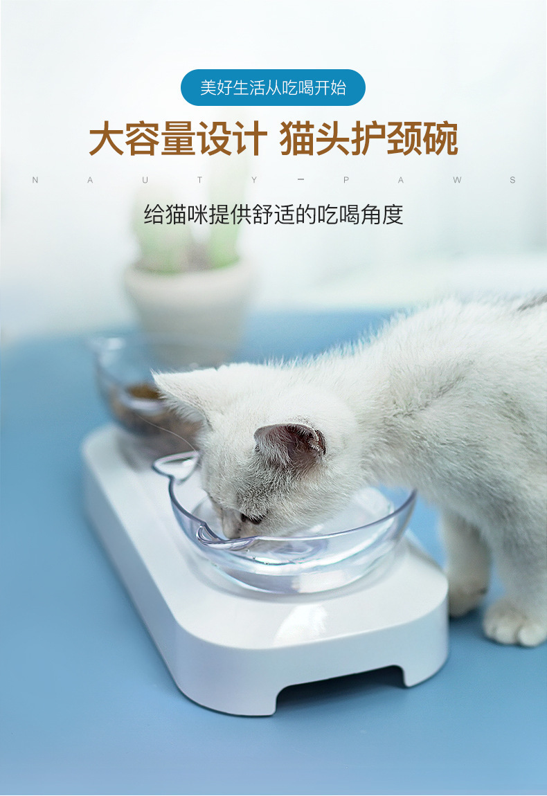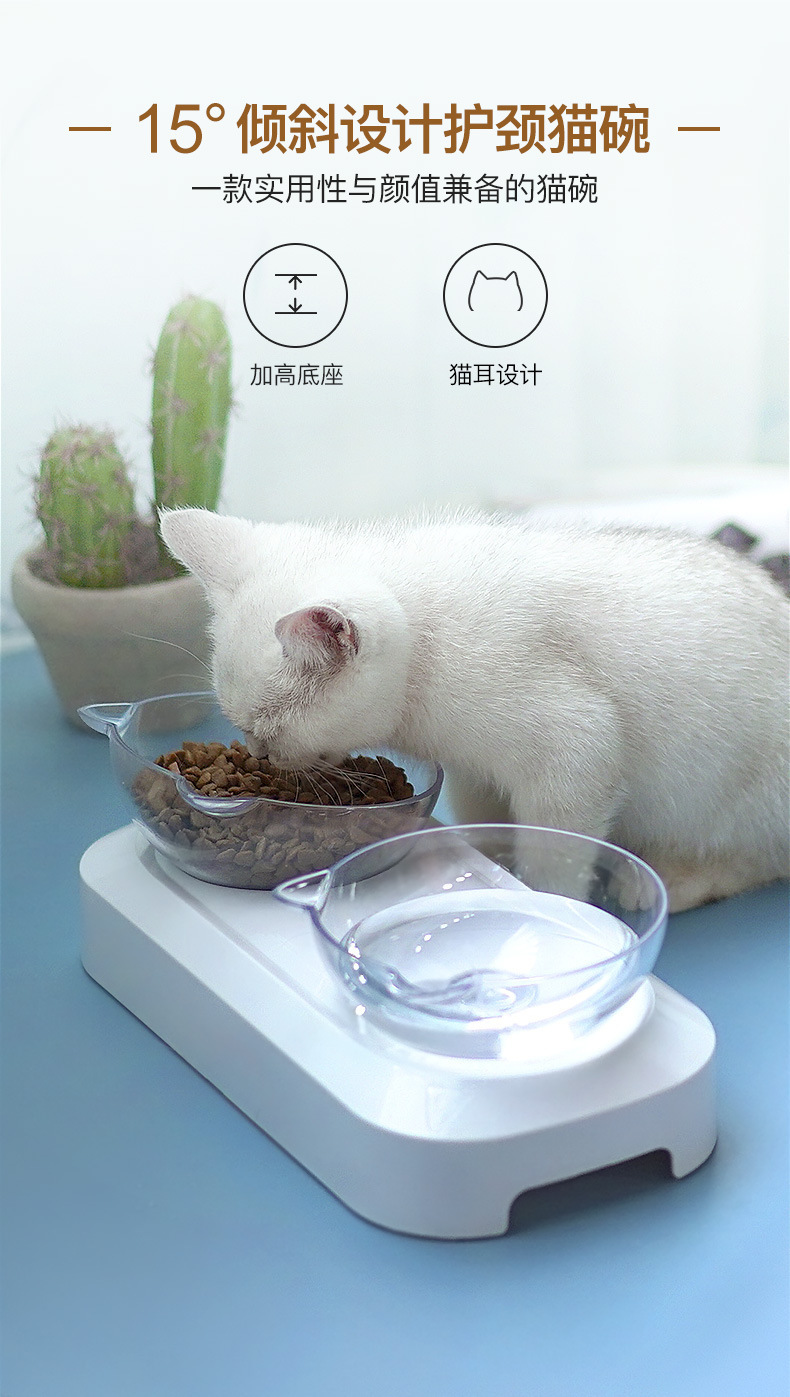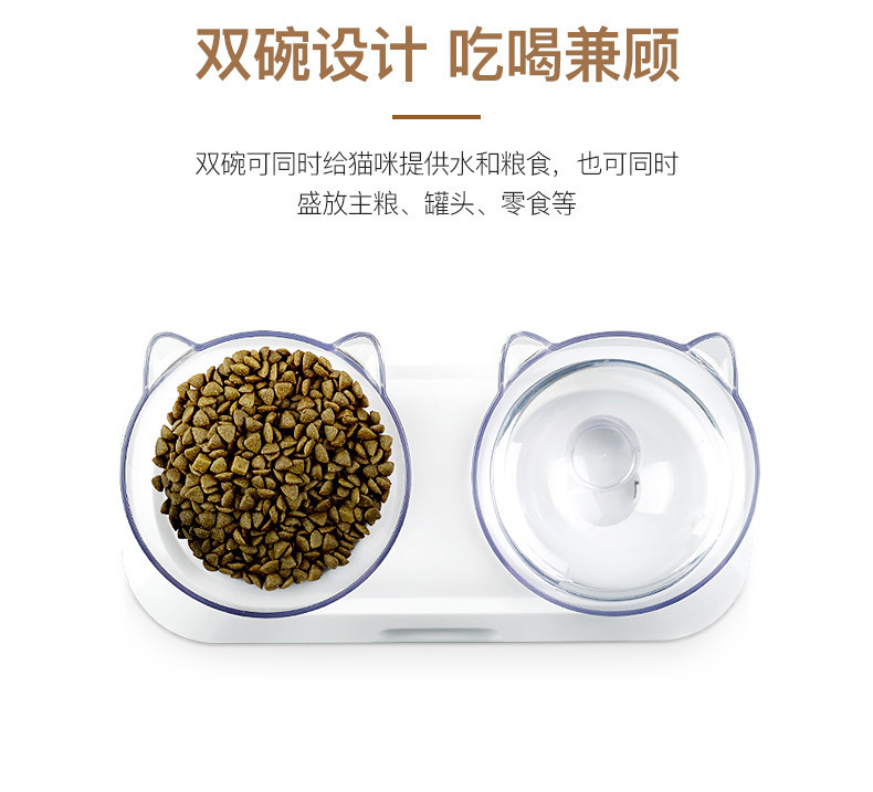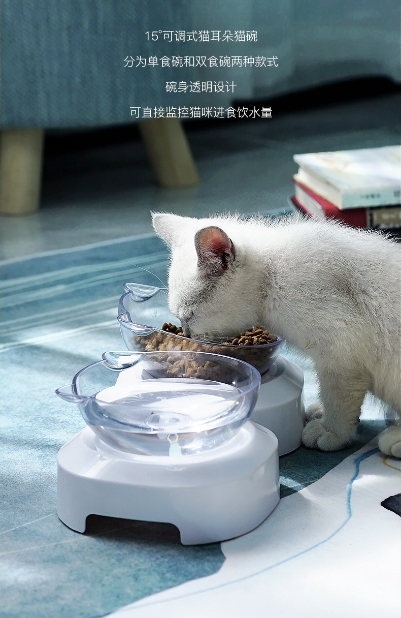 제조업체의 인기 있는 15도 조절 가능한 고양이 귀 애완동물 먹이 그릇, 항균 기울기 목 보호대, 물 먹이 및 먹이용 이중 그릇 디자인스토어 가기