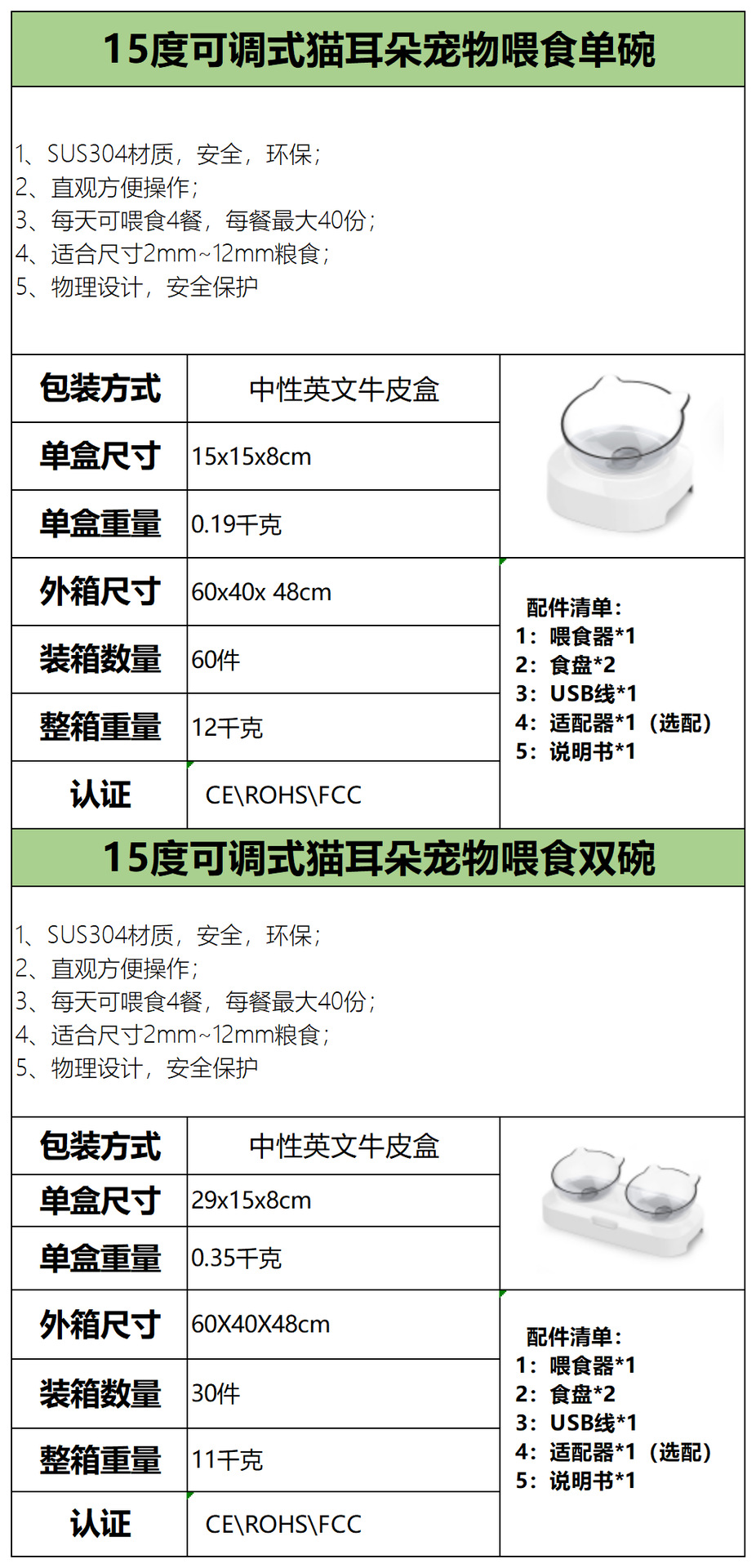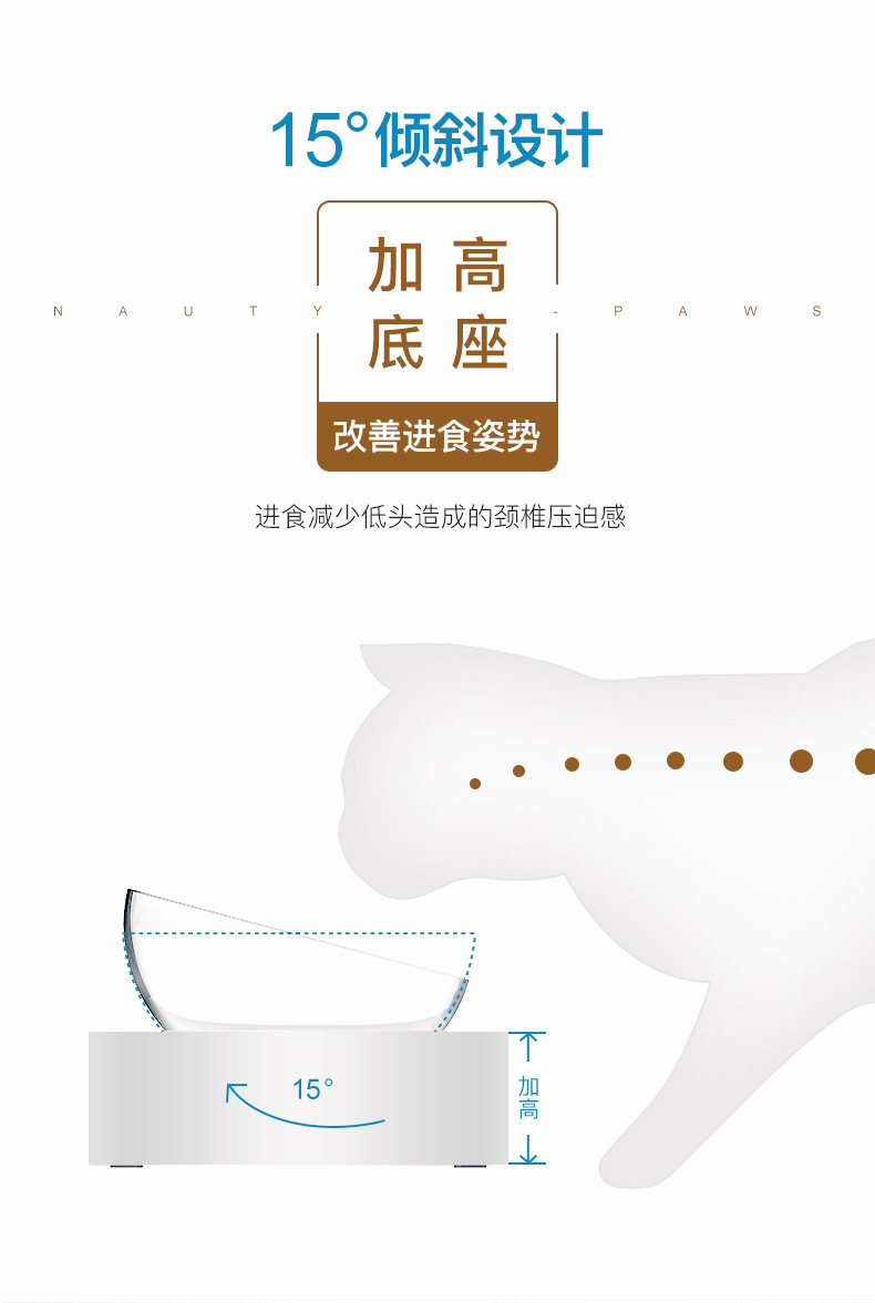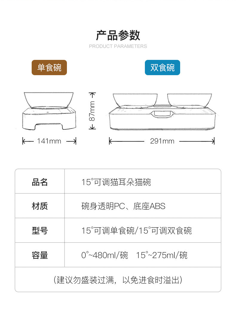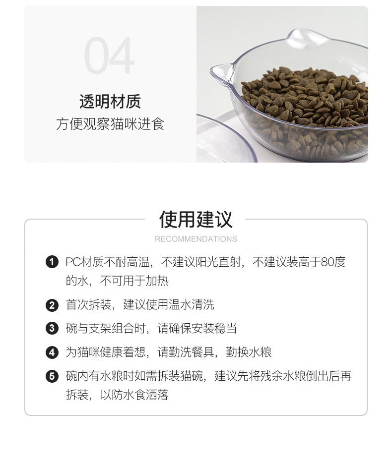 제조업체의 인기 있는 15도 조절 가능한 고양이 귀 애완동물 먹이 그릇, 항균 기울기 목 보호대, 물 먹이 및 먹이용 이중 그릇 디자인스토어 가기