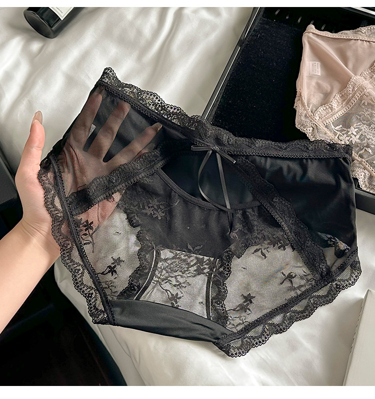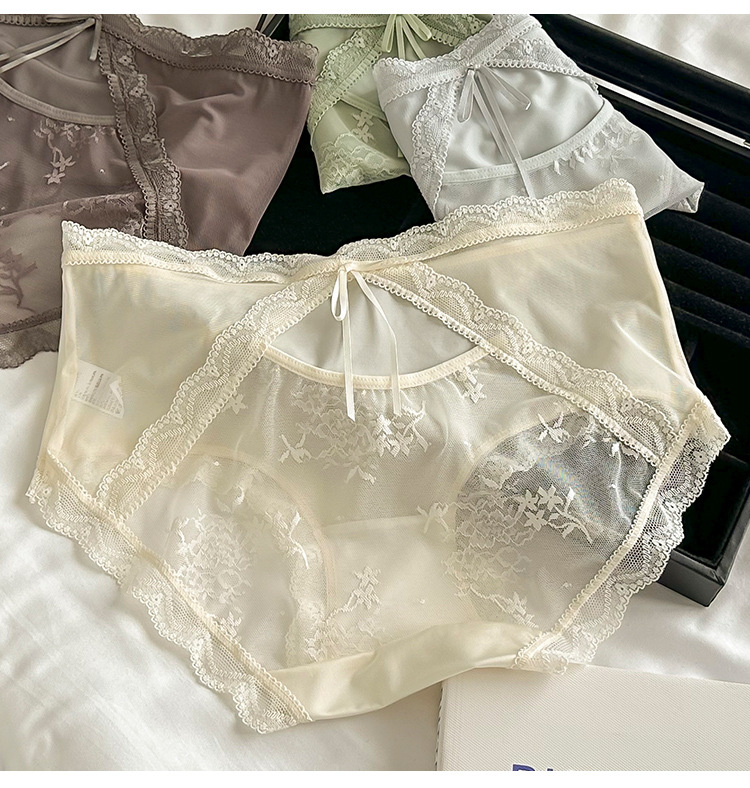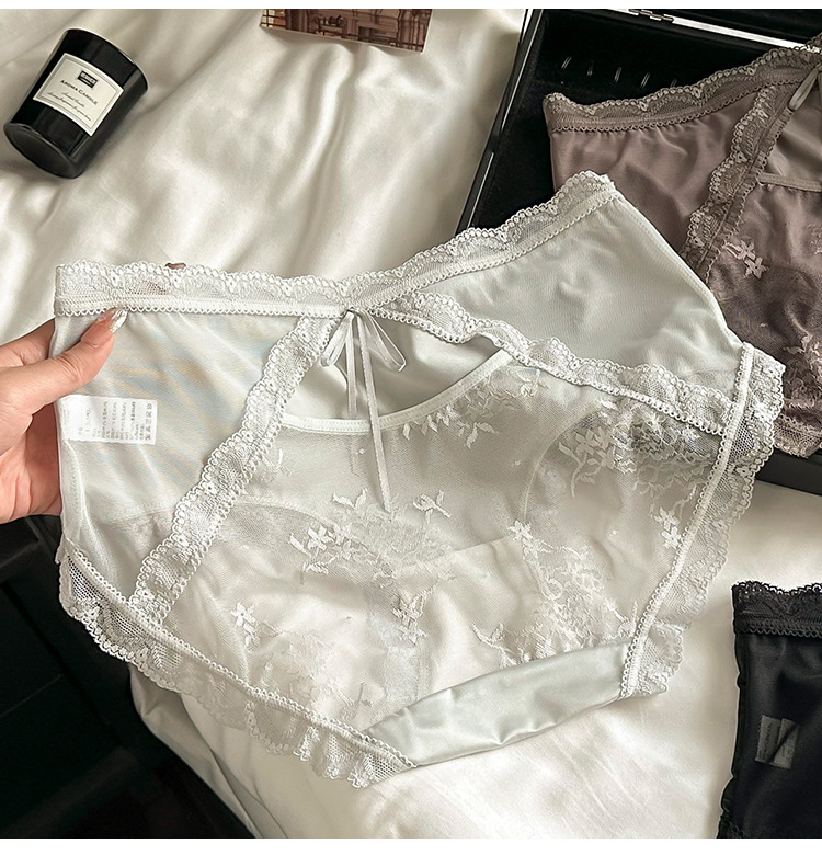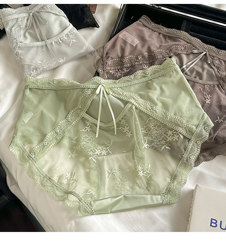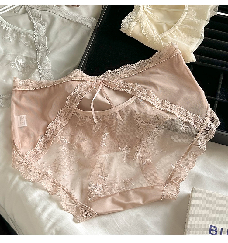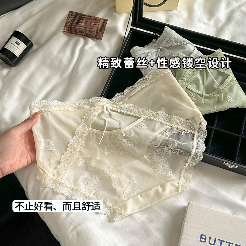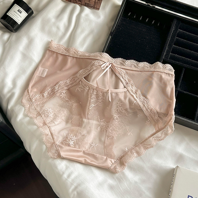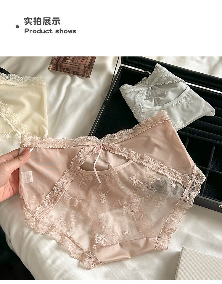 로맨틱한 레이스 ~ 여름 신상품, 뒷면에 속이 빈 리본 레이스 여아 속옷, 여성용 로우 웨이스트 고급 새틴스토어 가기