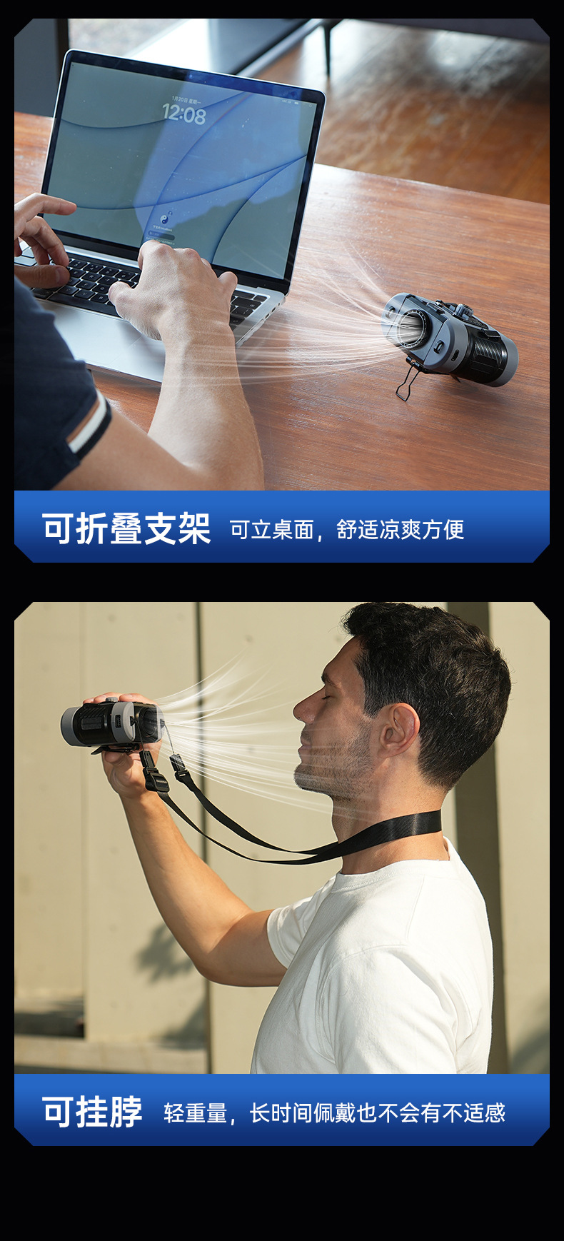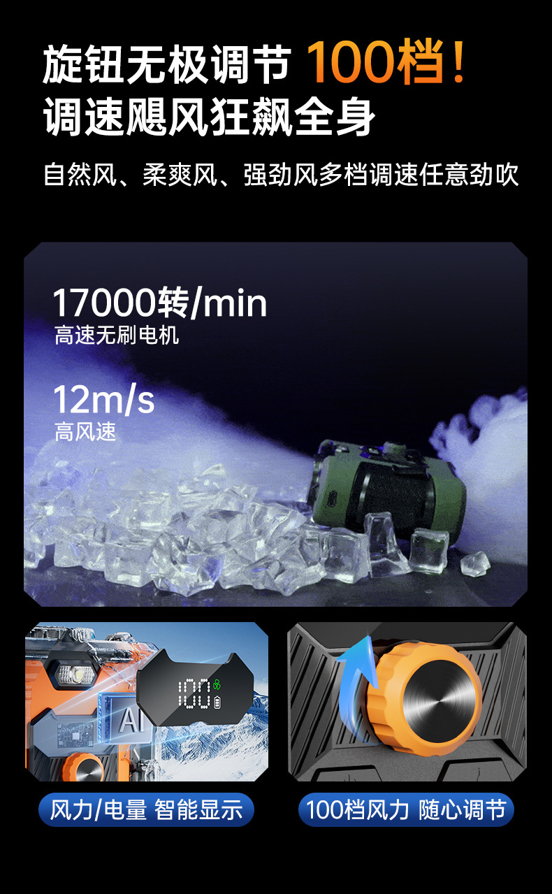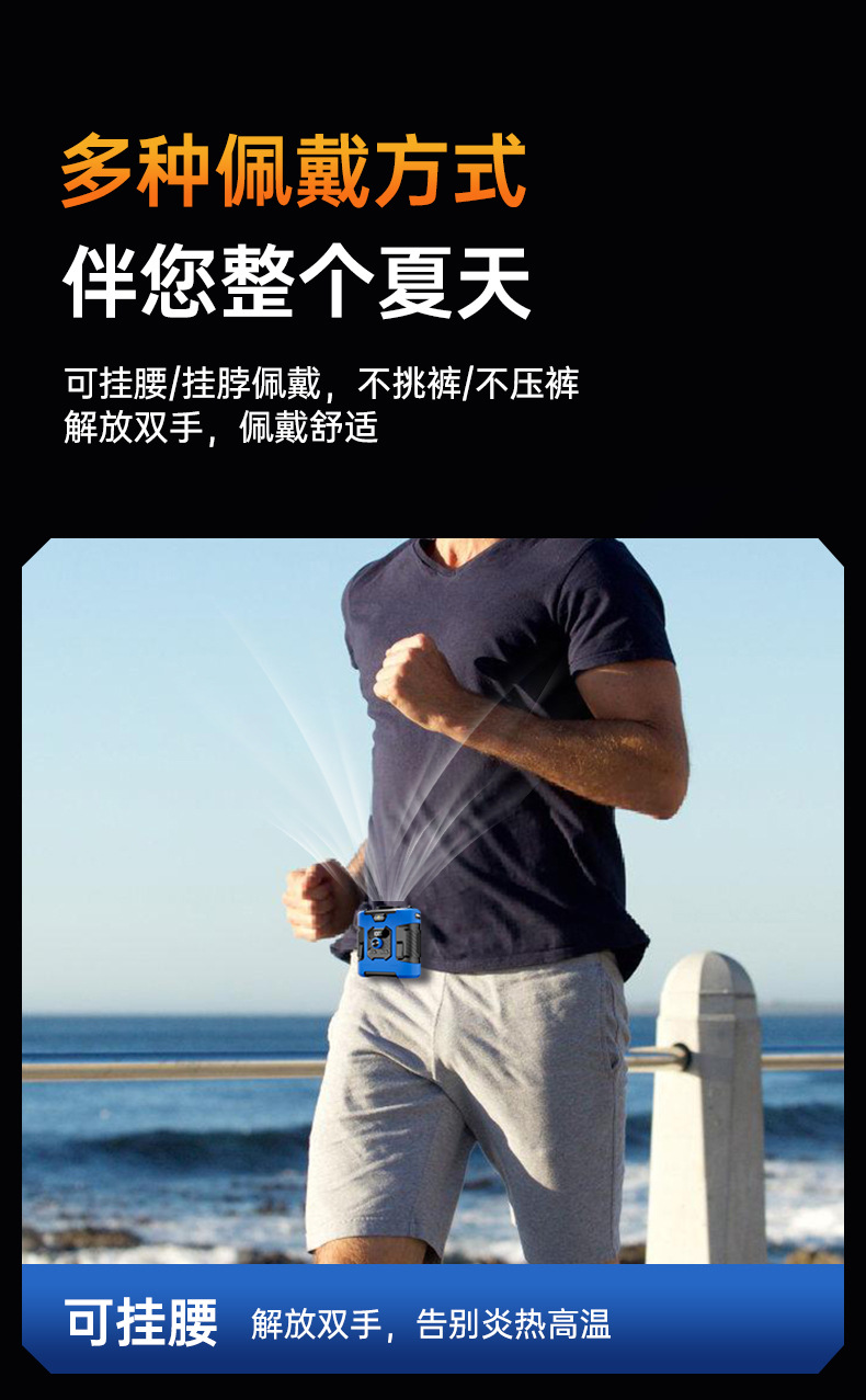 국경 간 새로운 고속 허리 팬 휴대용 허리 야외 사이트 충전 보물 조명 목 팬스토어 가기