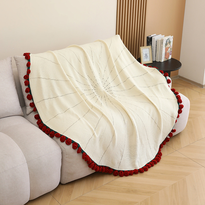 장미 꽃다발 담요 마무리 사무실 낮잠 꽃 담요 울 그룹 손으로 짠 담요 여자 친구 선물