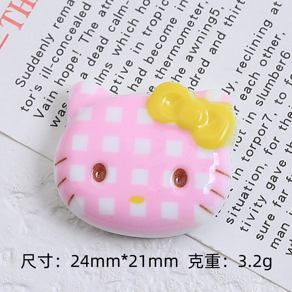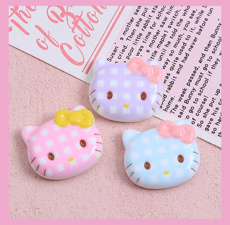 귀여운 격자 무늬 고양이 만화 수제 DIY 보석 액세서리 크림 접착제 수지 작은 액세서리 구멍 신발 버클 소재