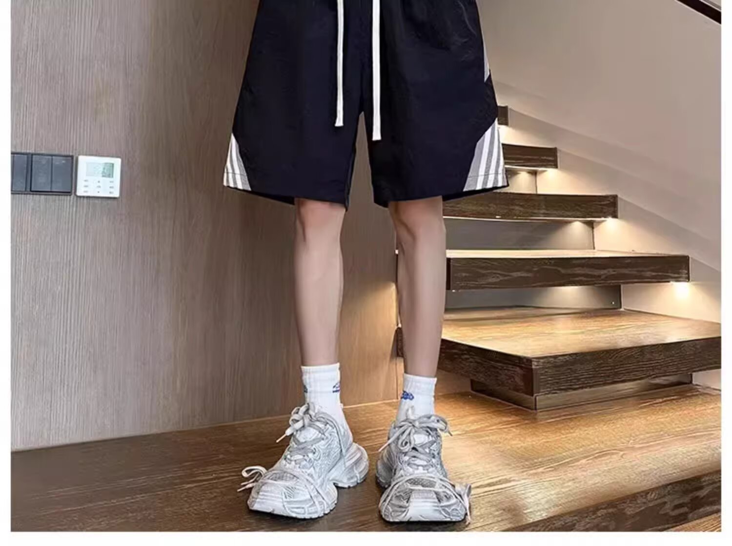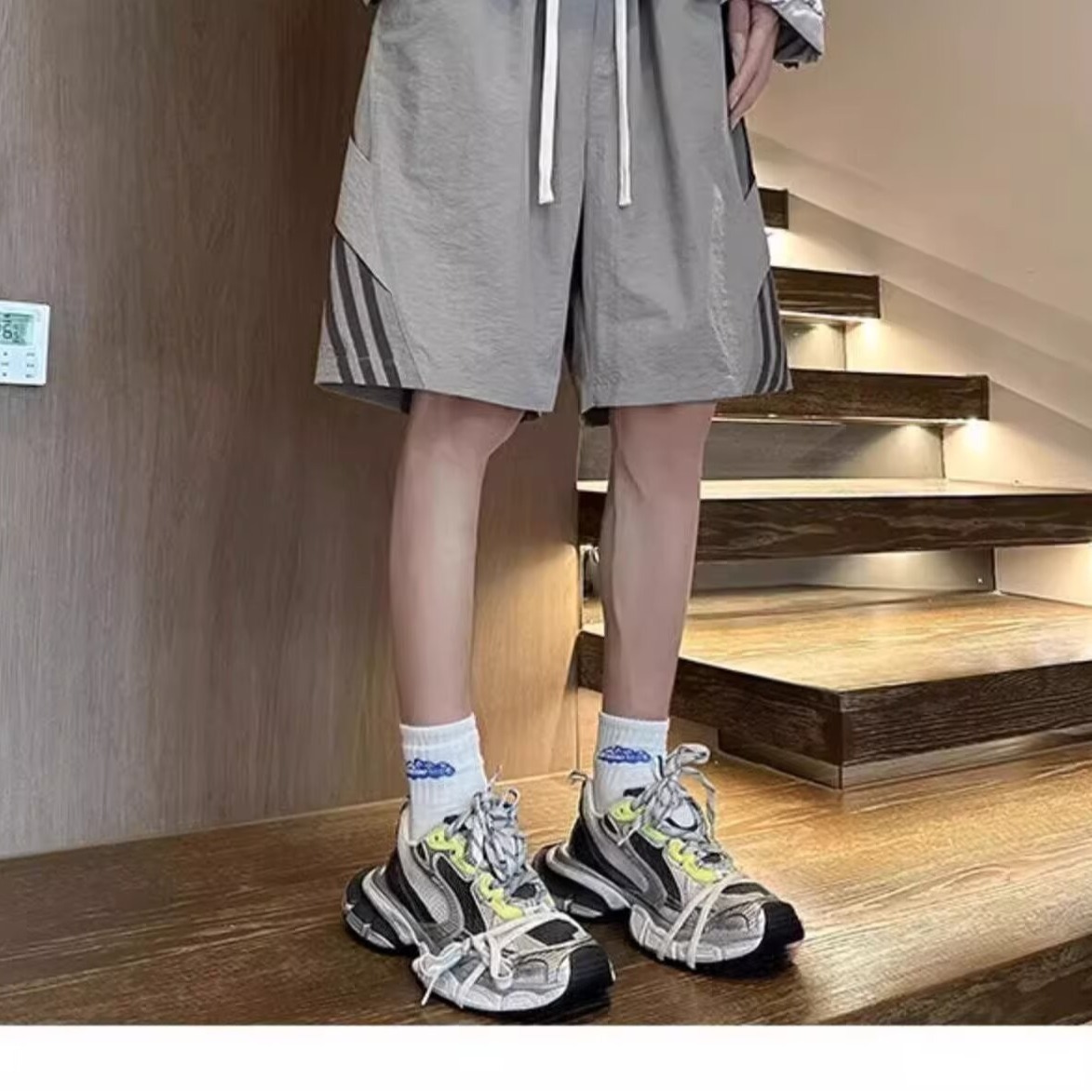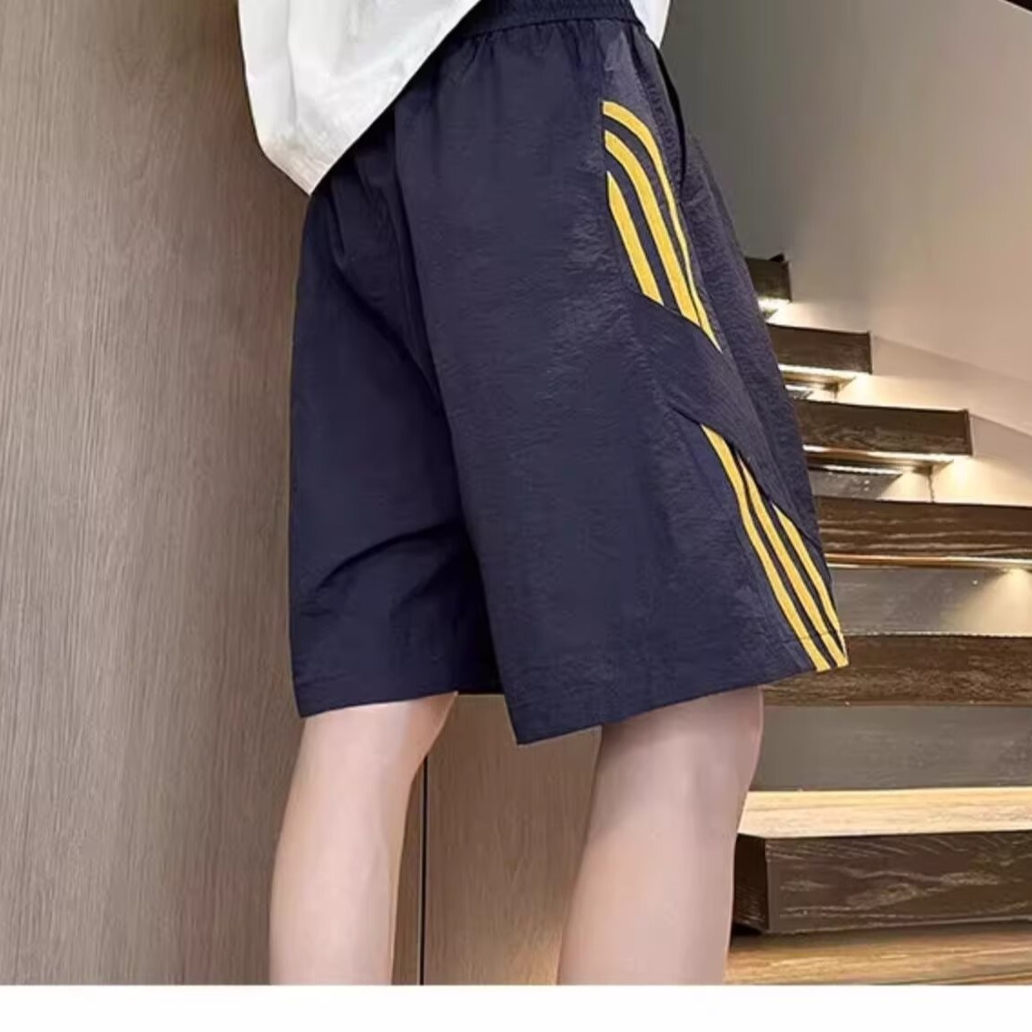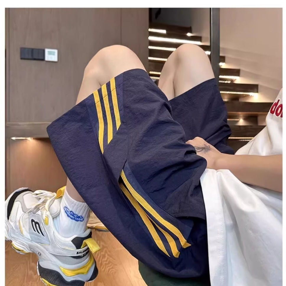 3줄 스트라이프 스포츠 반바지 남성 여름 아이스 실크 속건성 비치 팬츠 홍콩 트렌디 브랜드 루즈 캐주얼 5부 팬츠스토어 가기