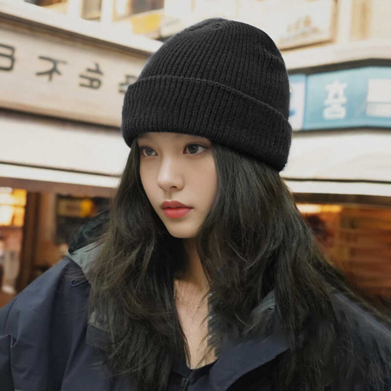 니트 모자 여자의 두꺼운 겨울 검은 양모 모자 남자의 유행 따뜻한 멜론 모자 새로운 스타일 모자 큰 머리 Wai 감기스토어 가기