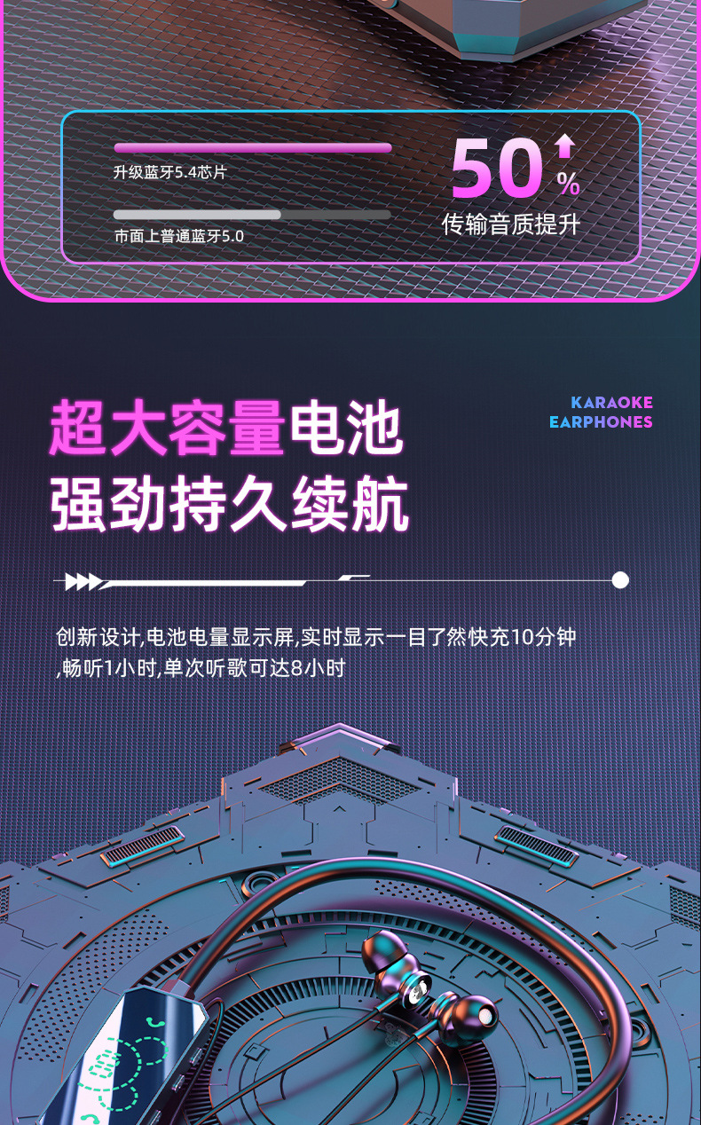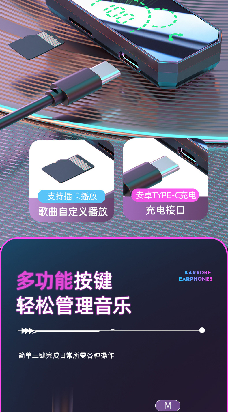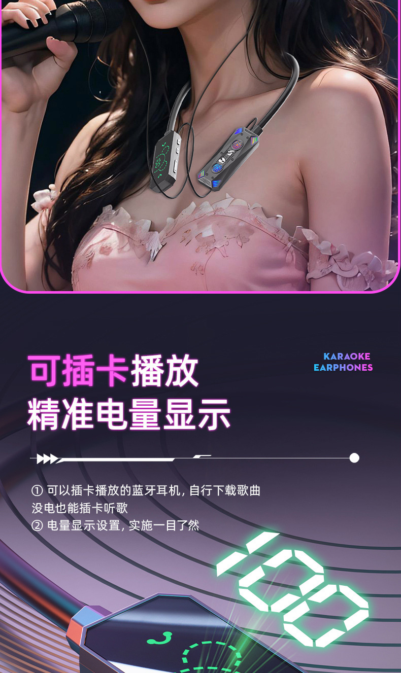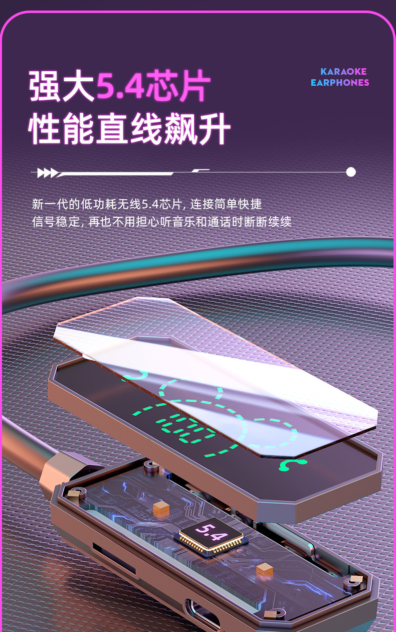 K-송 이어백 무선 블루투스 헤드셋, 목걸이형 스마트 디지털 디스플레이, 매우 긴 배터리 수명, Apple viv Huawei binaural에 적합스토어 가기