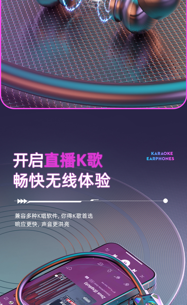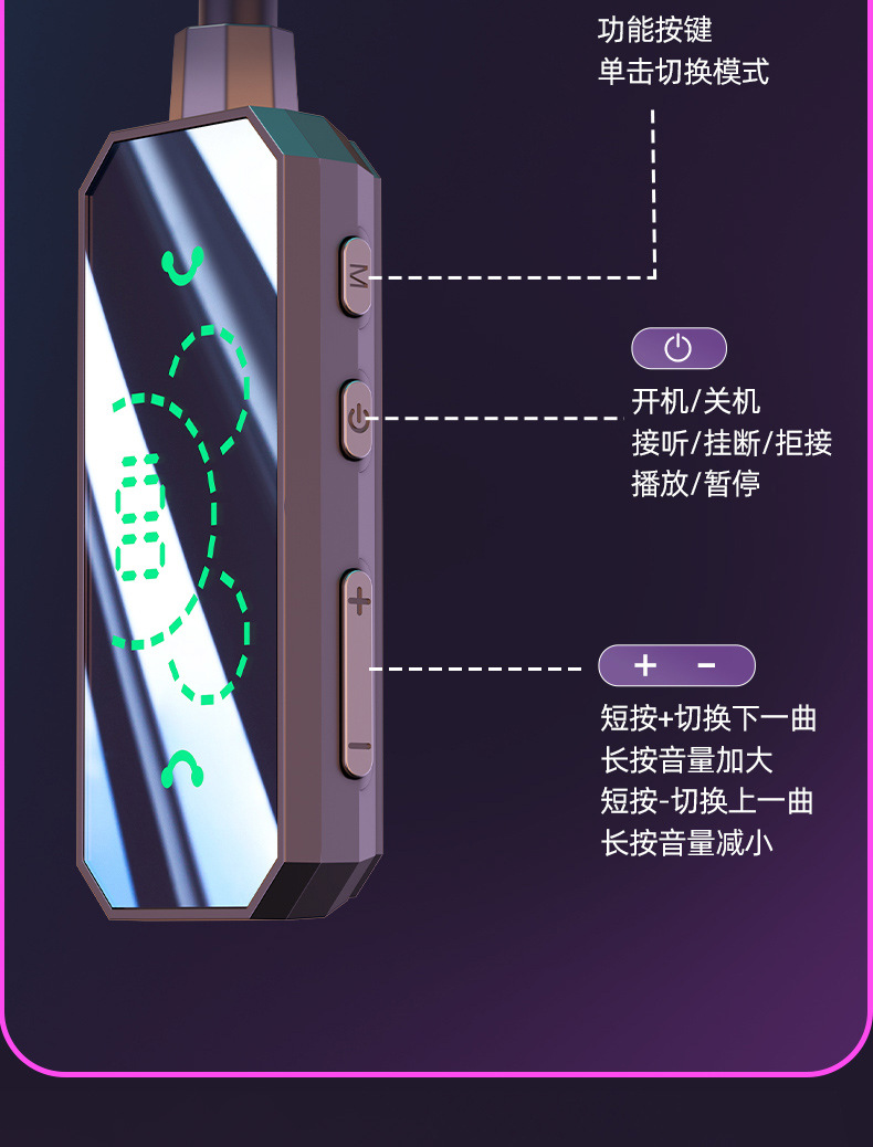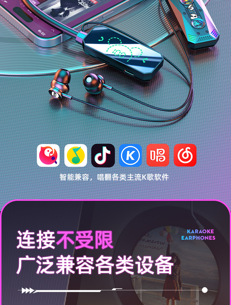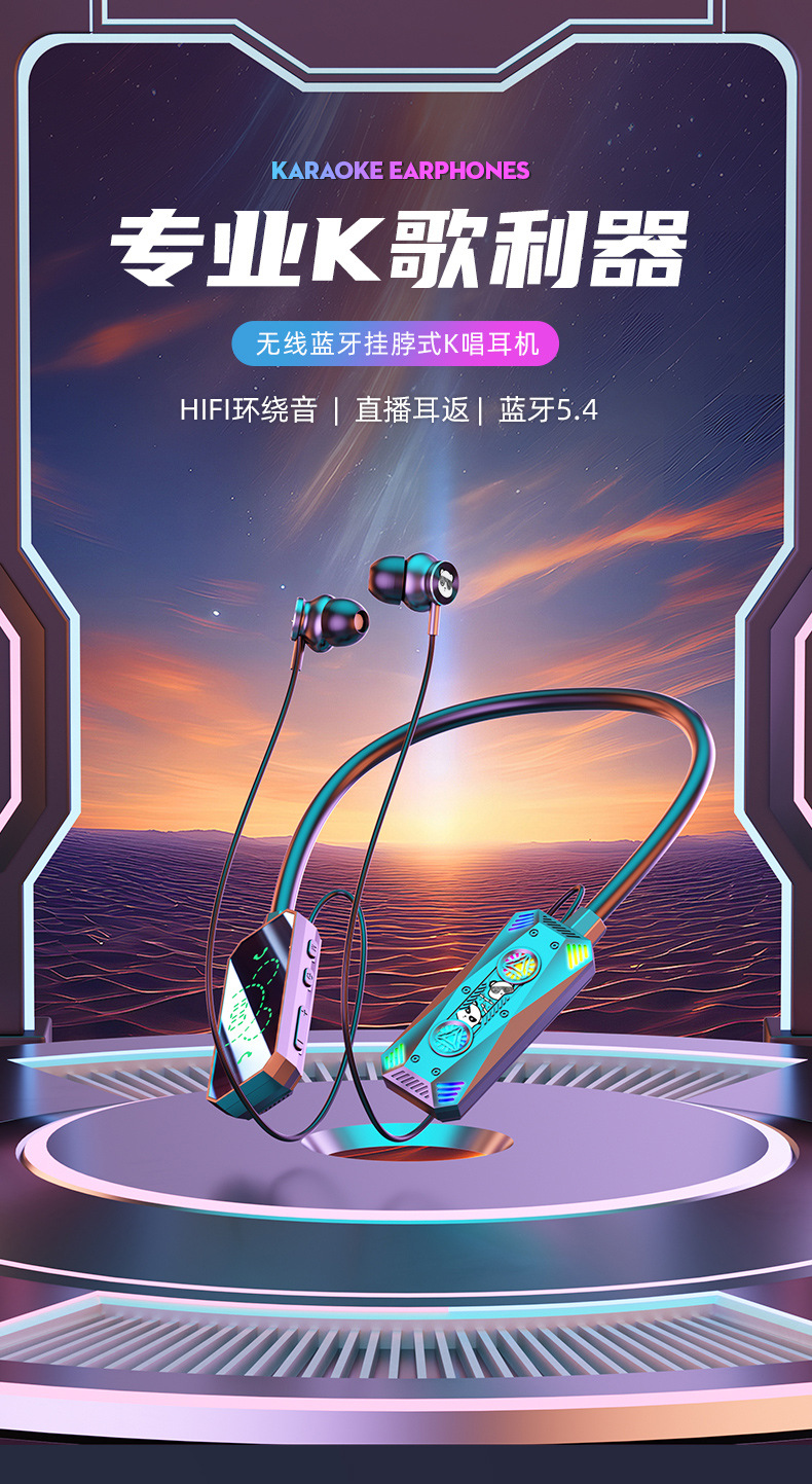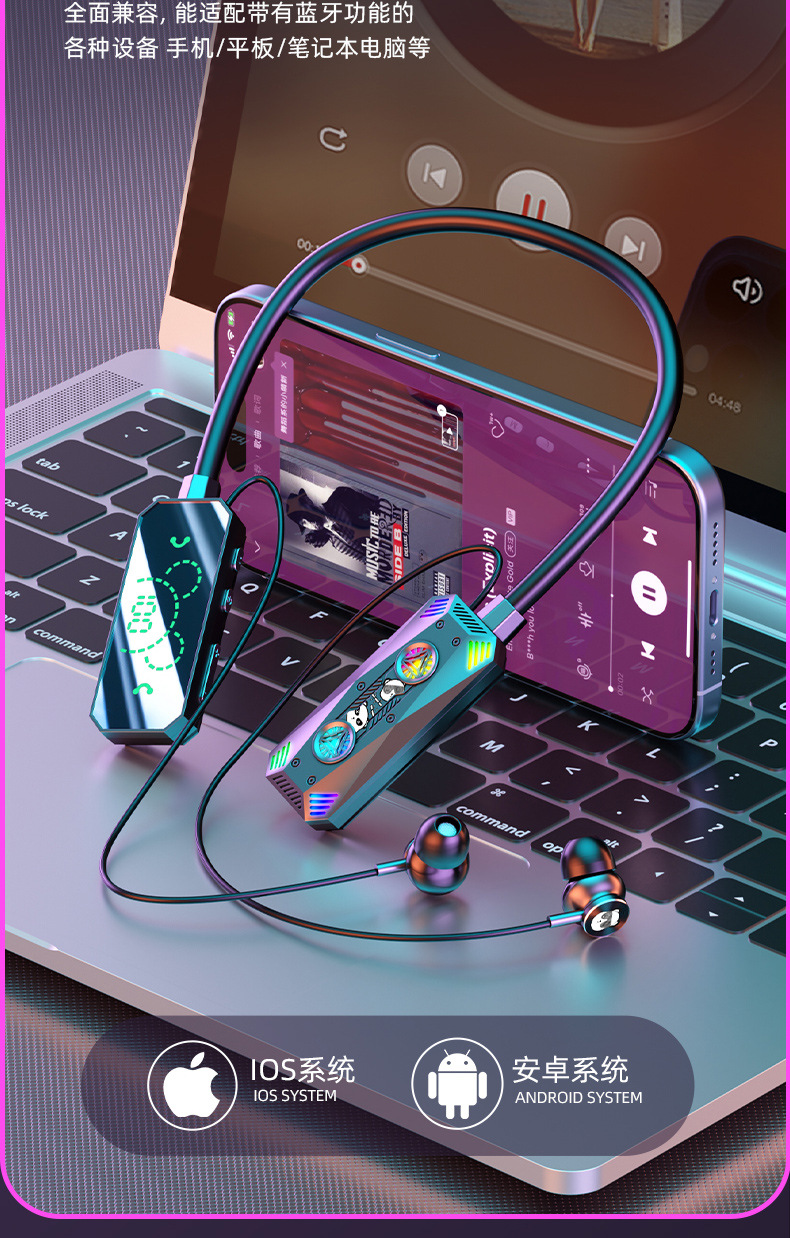K-송 이어백 무선 블루투스 헤드셋, 목걸이형 스마트 디지털 디스플레이, 매우 긴 배터리 수명, Apple viv Huawei binaural에 적합
