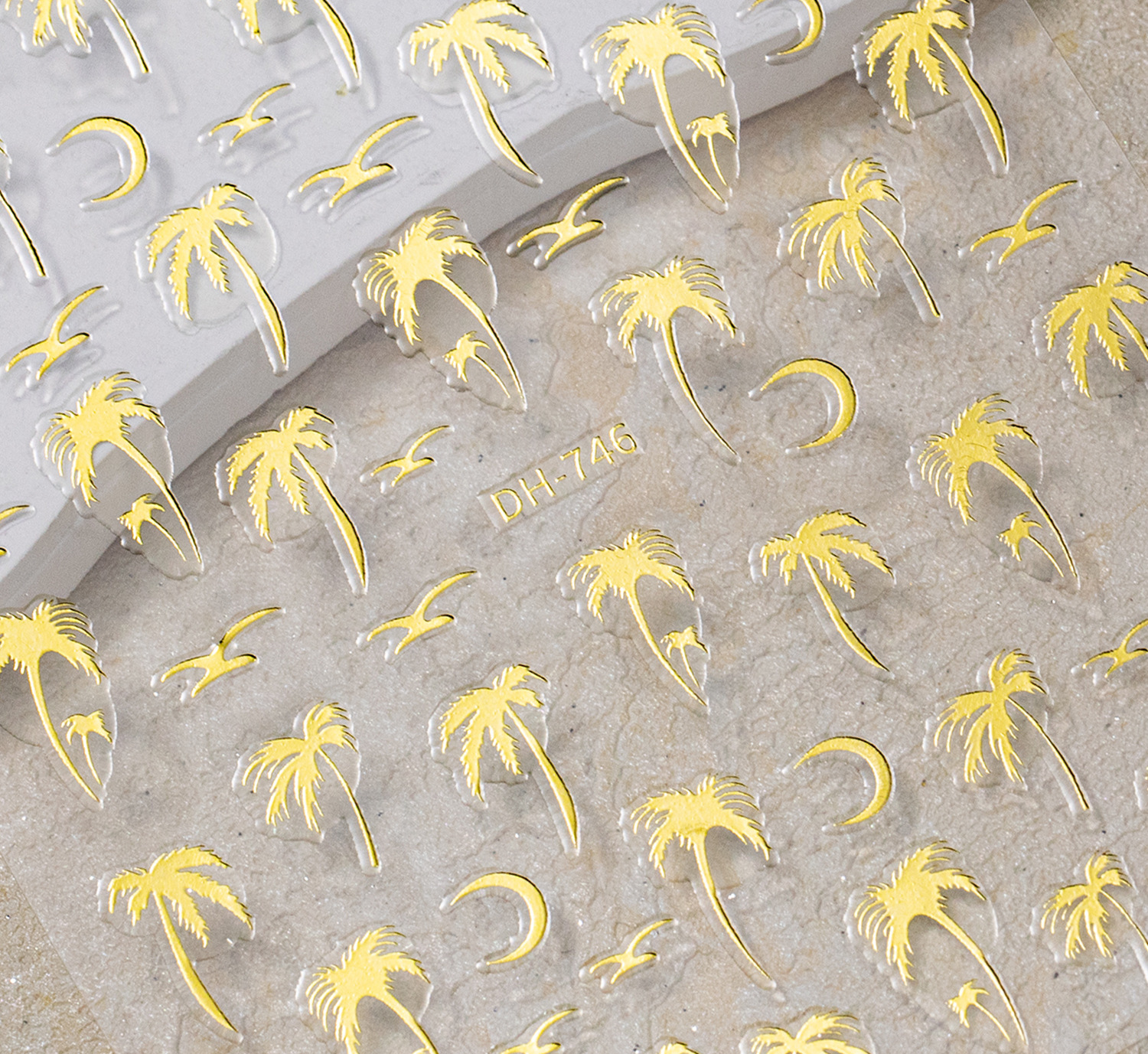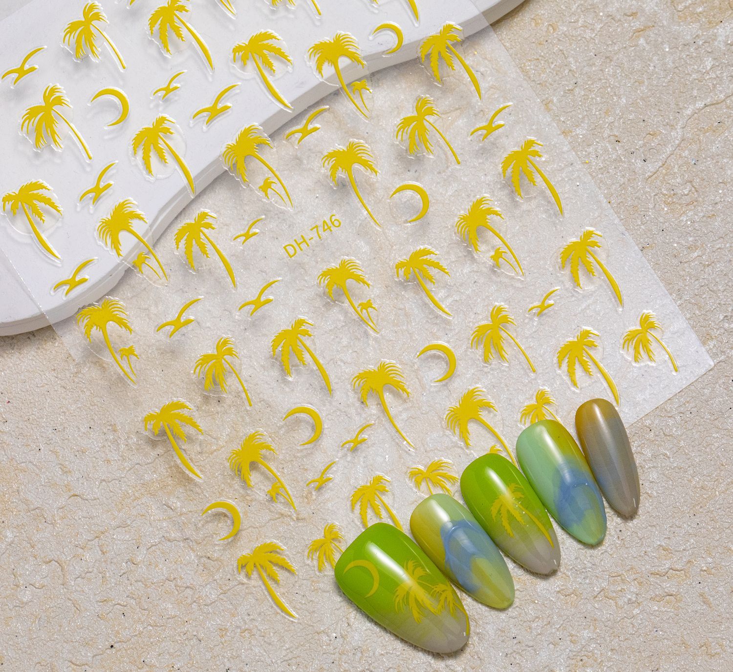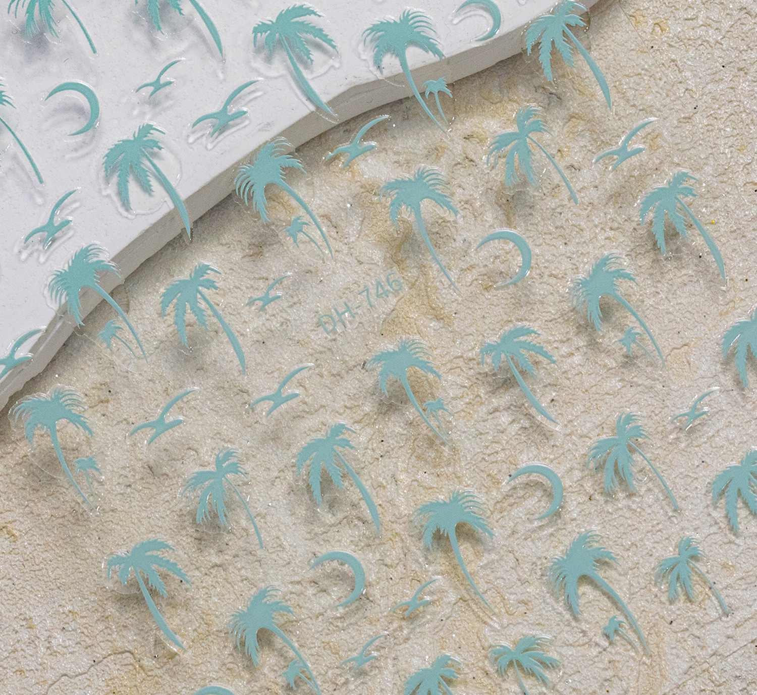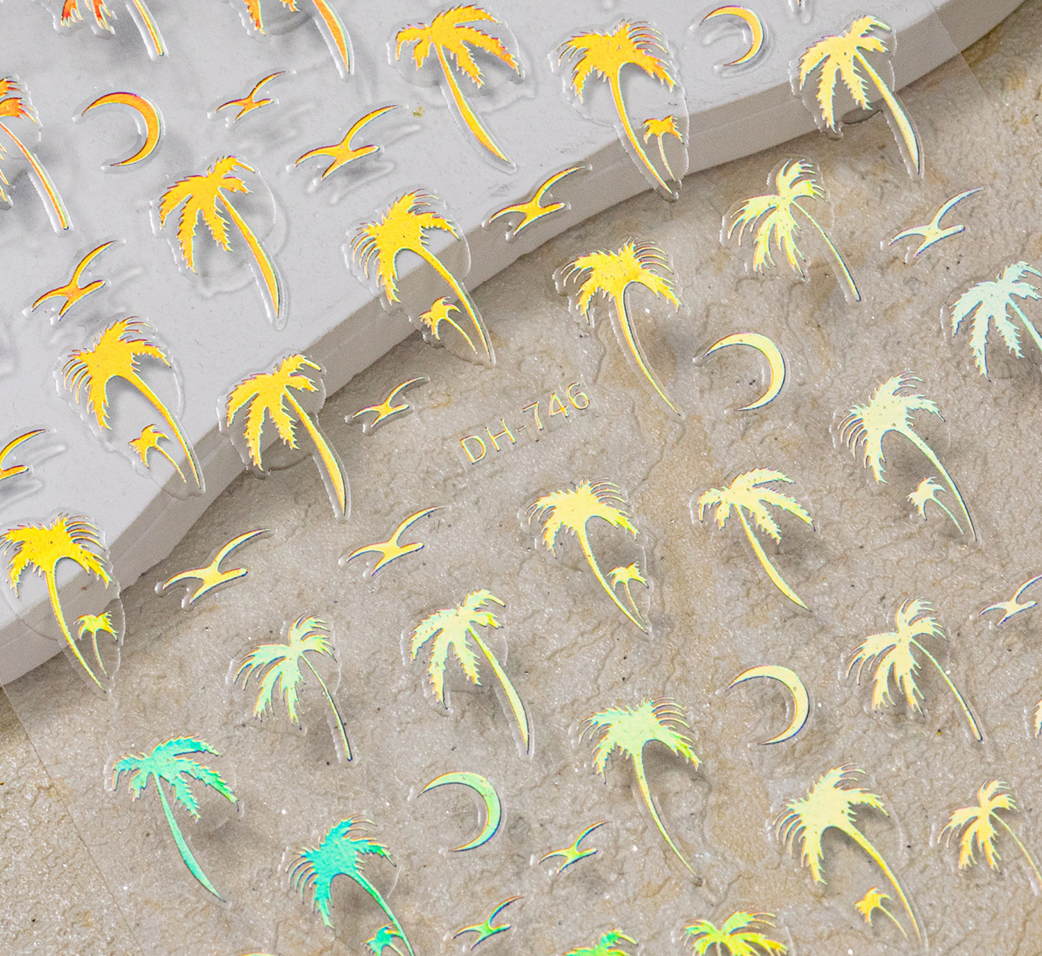 Ins 여름 해변 코코넛 나무 갈매기 오로라 초박형 원활한 3D 접착제 네일 아트 스티커 쥬얼리스토어 가기