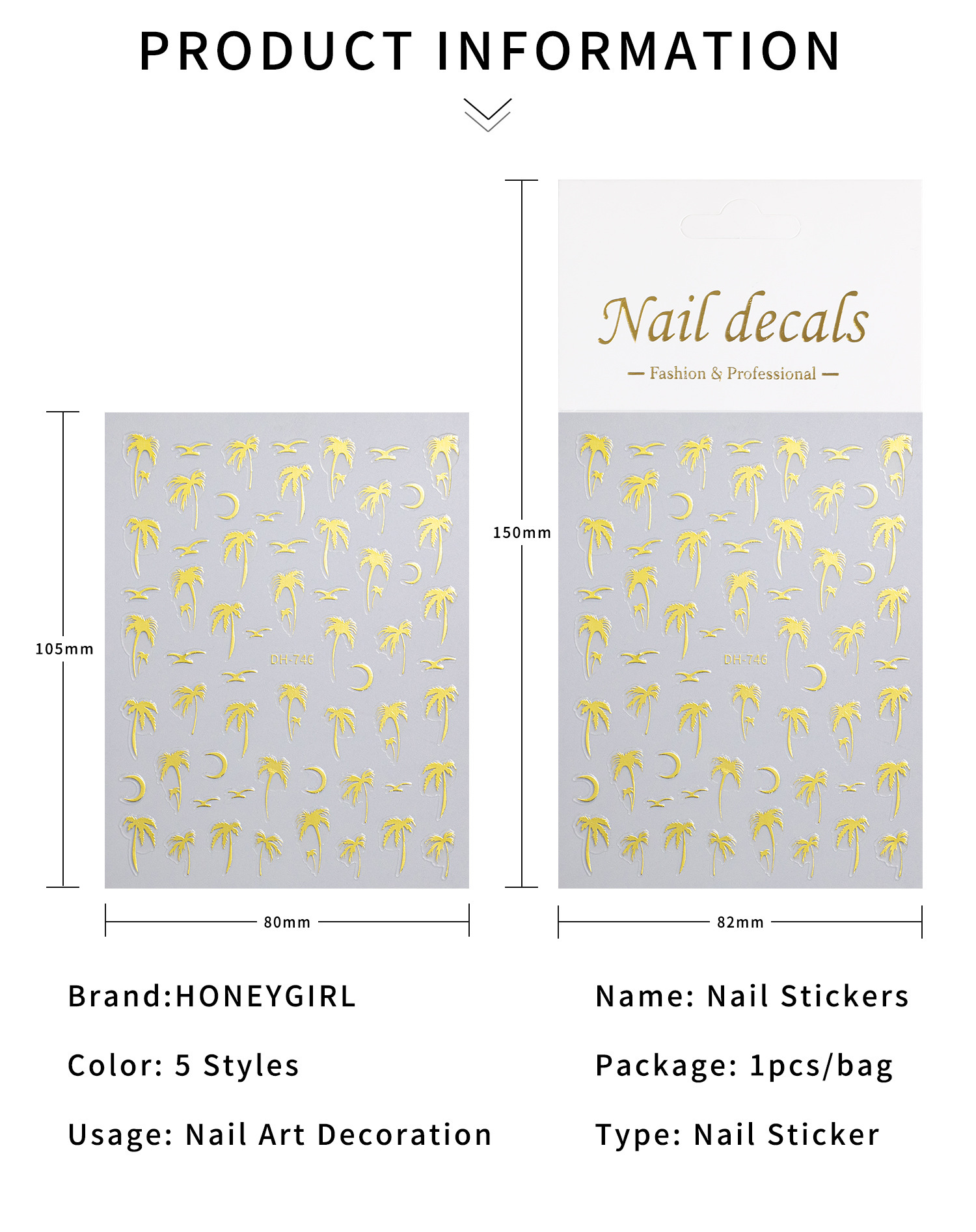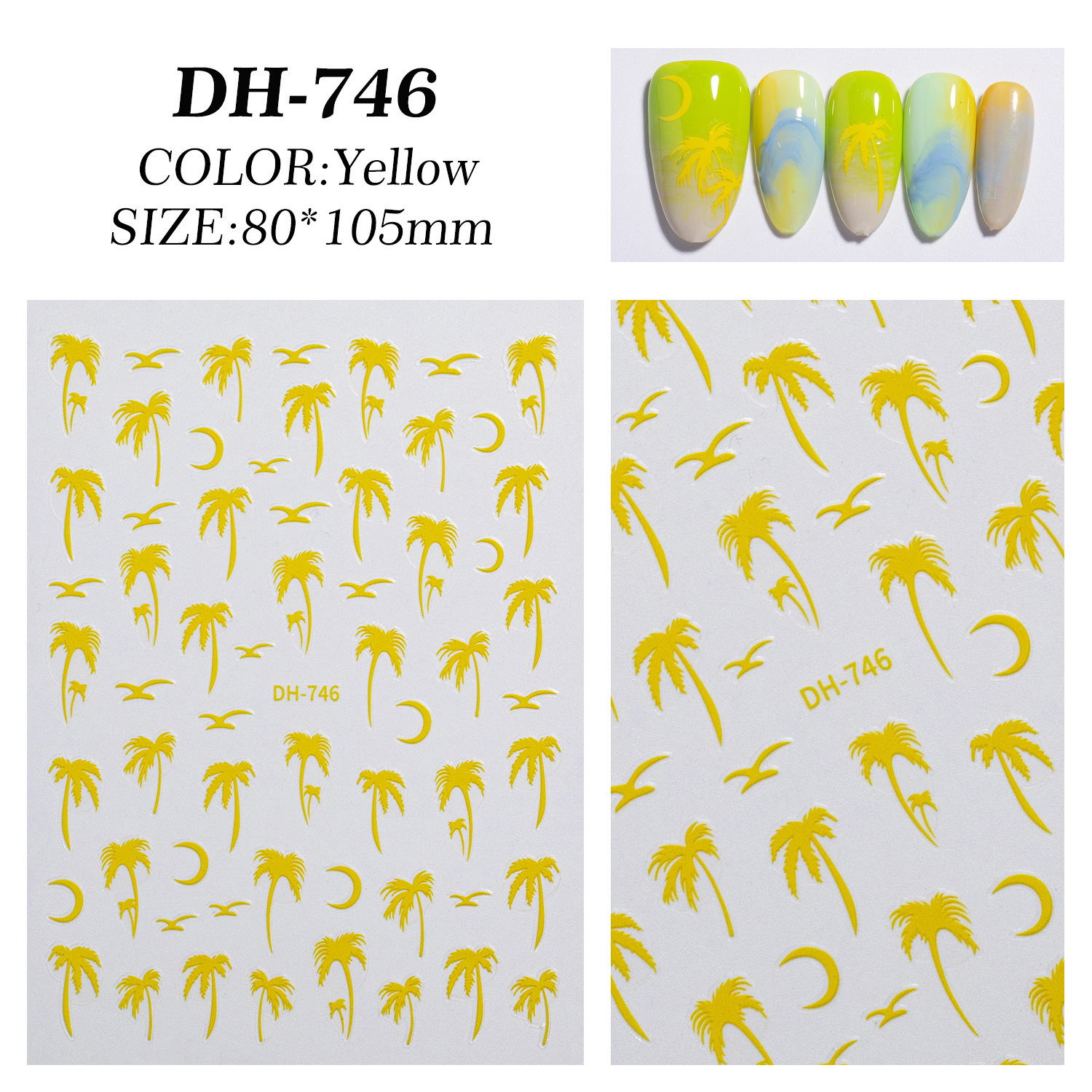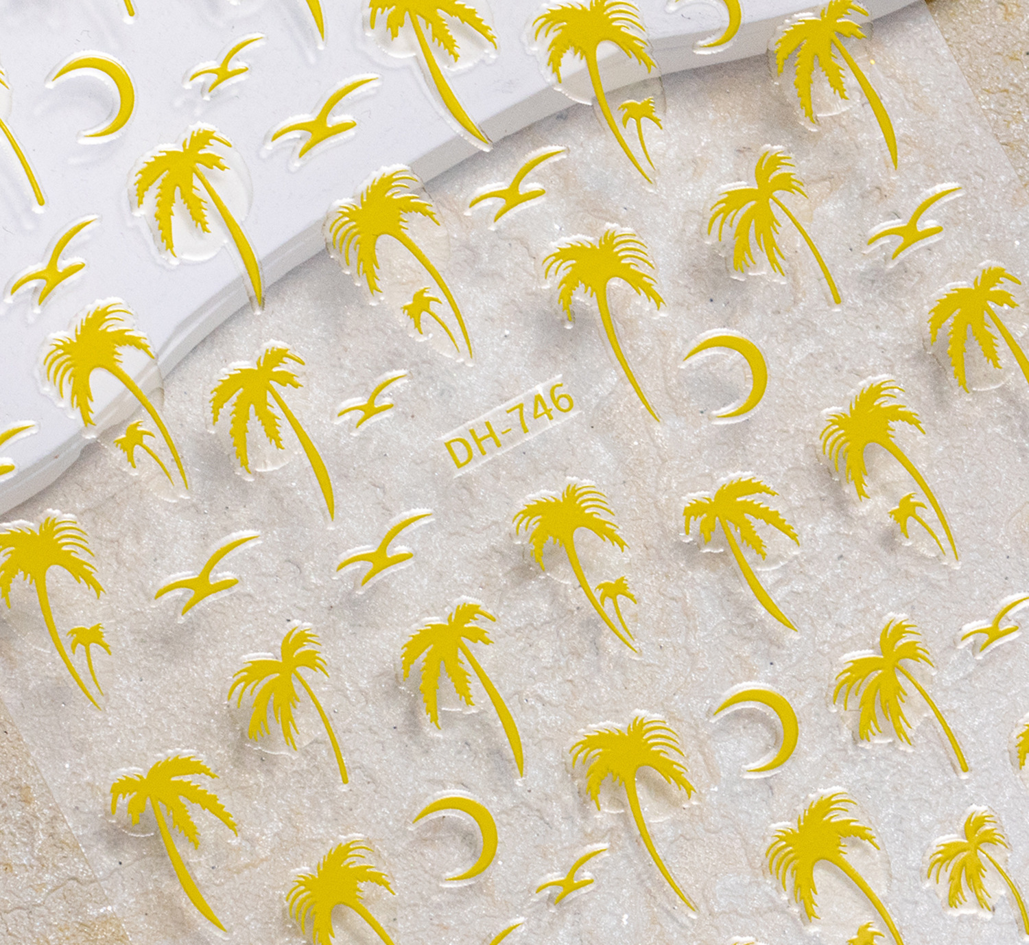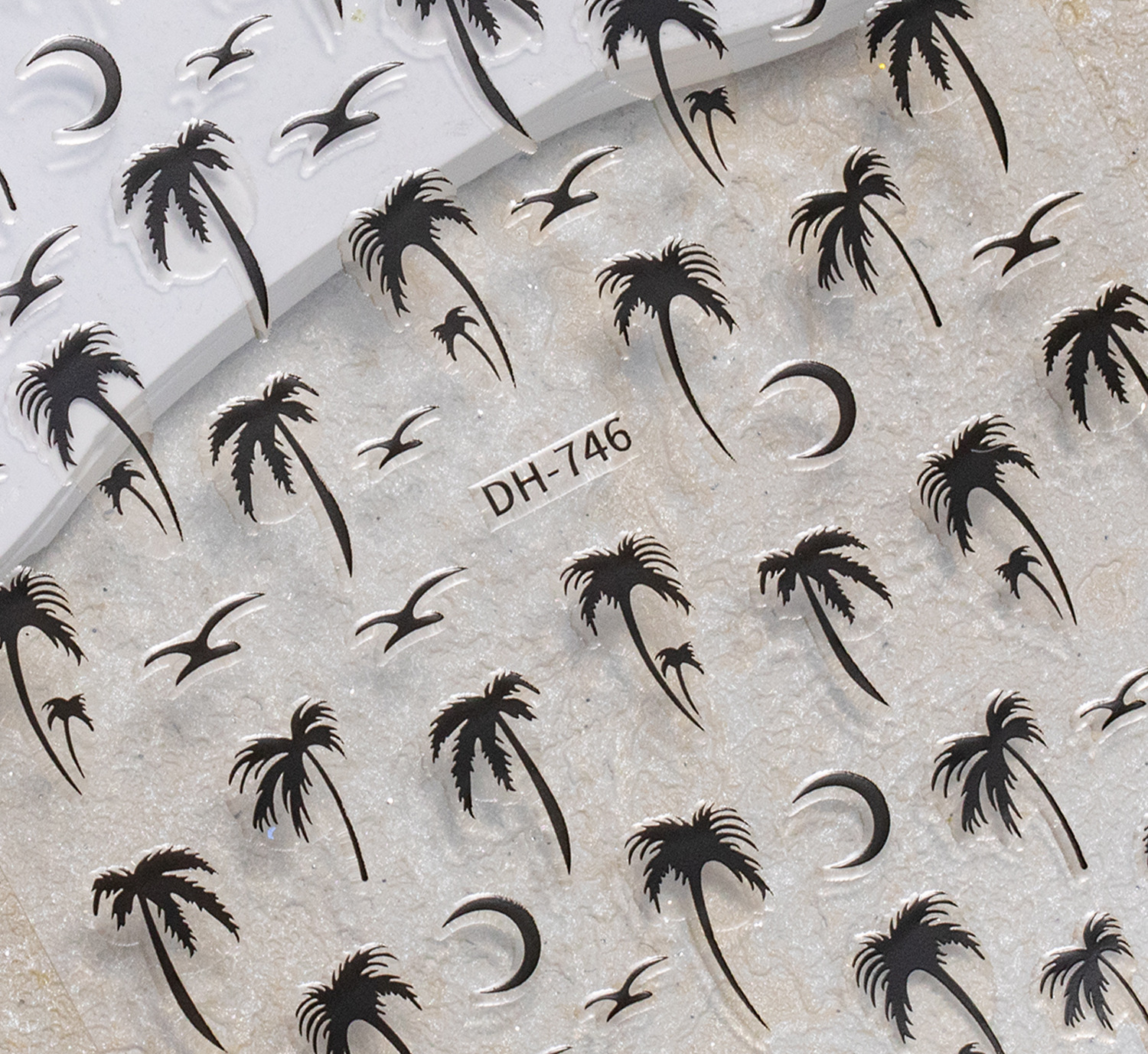 Ins 여름 해변 코코넛 나무 갈매기 오로라 초박형 원활한 3D 접착제 네일 아트 스티커 쥬얼리스토어 가기