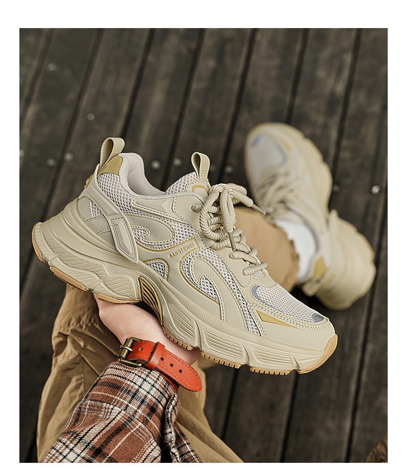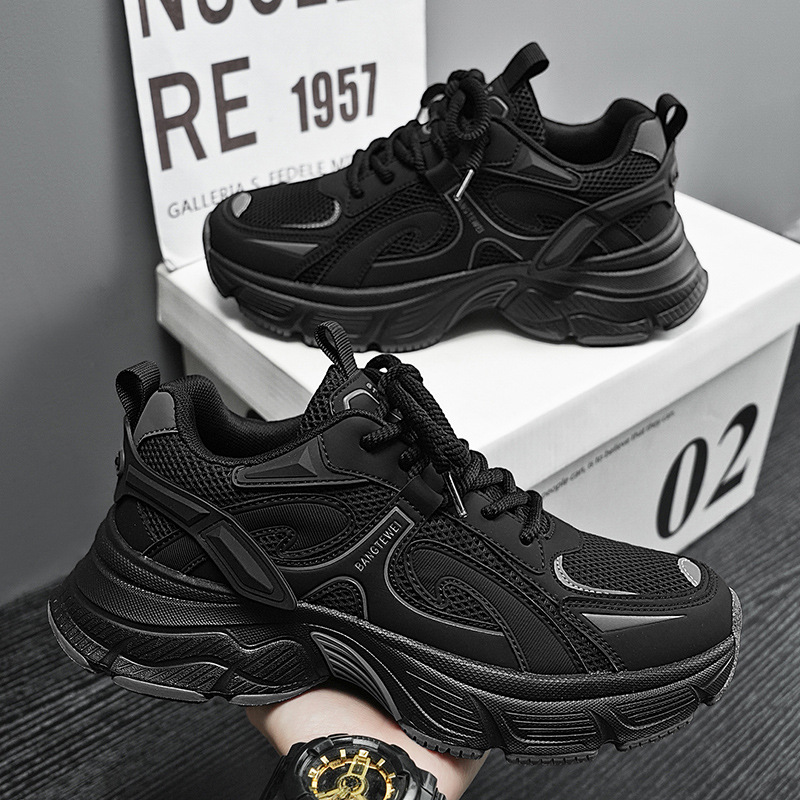 남성 신발 2025 여름 새로운 남성 패션 캐주얼 신발 두꺼운 밑창 편안한 메쉬 통기성 높이 증가 아빠 신발스토어 가기