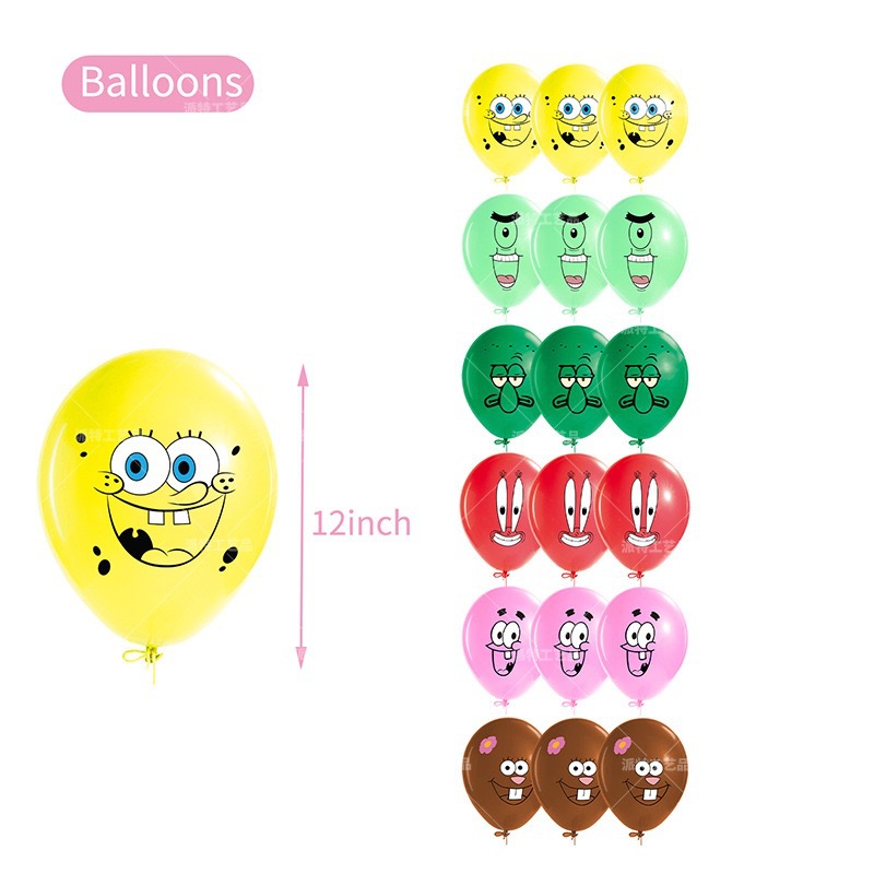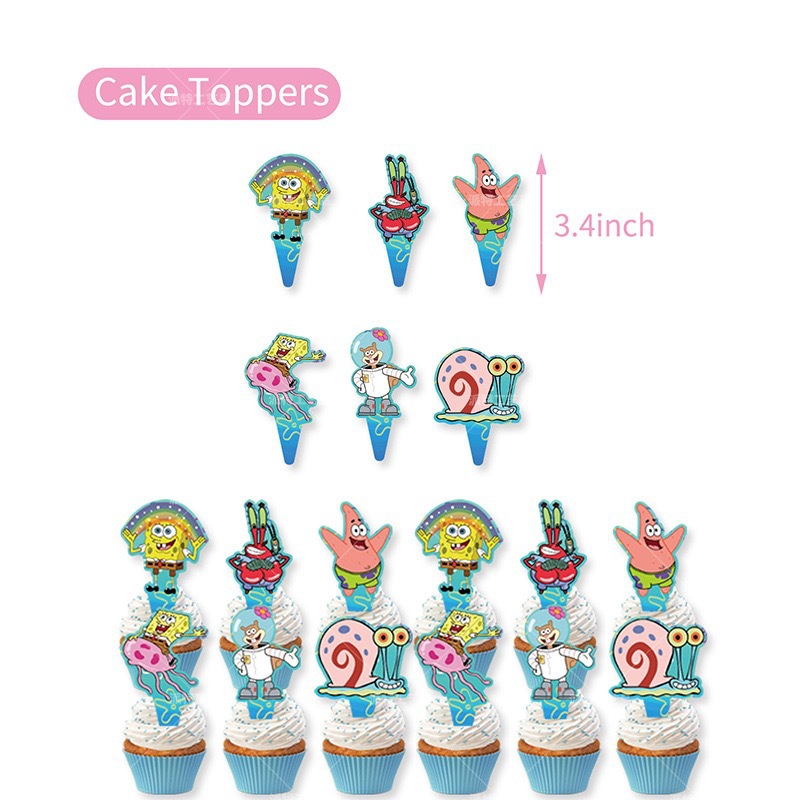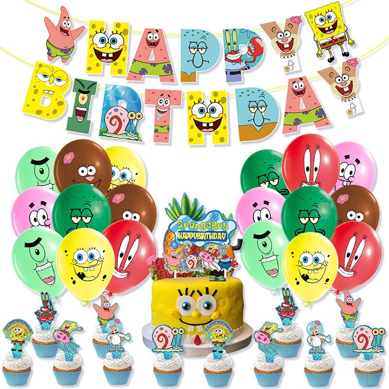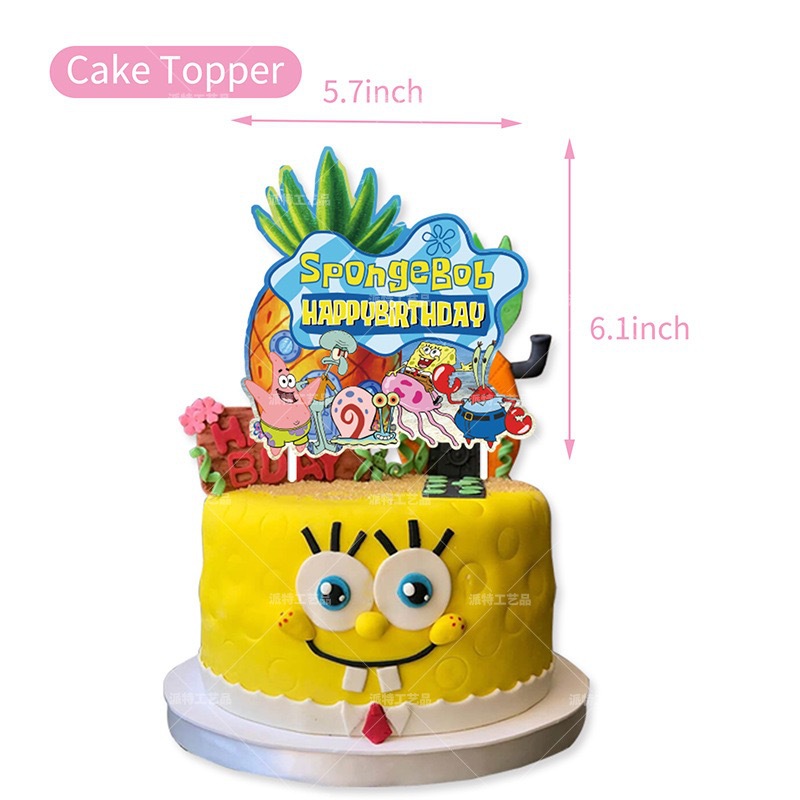 새로운 스폰지 밥 테마 생일 파티 공급 국경 깃발 케이크 삽입 풍선 배경 장식 재고스토어 가기