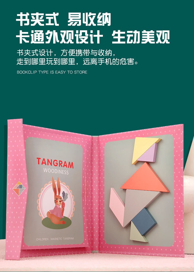 • 새롭게 업그레이드된 녹색 자석 탱그램(7개 조각 + 252개 질문집 포함)