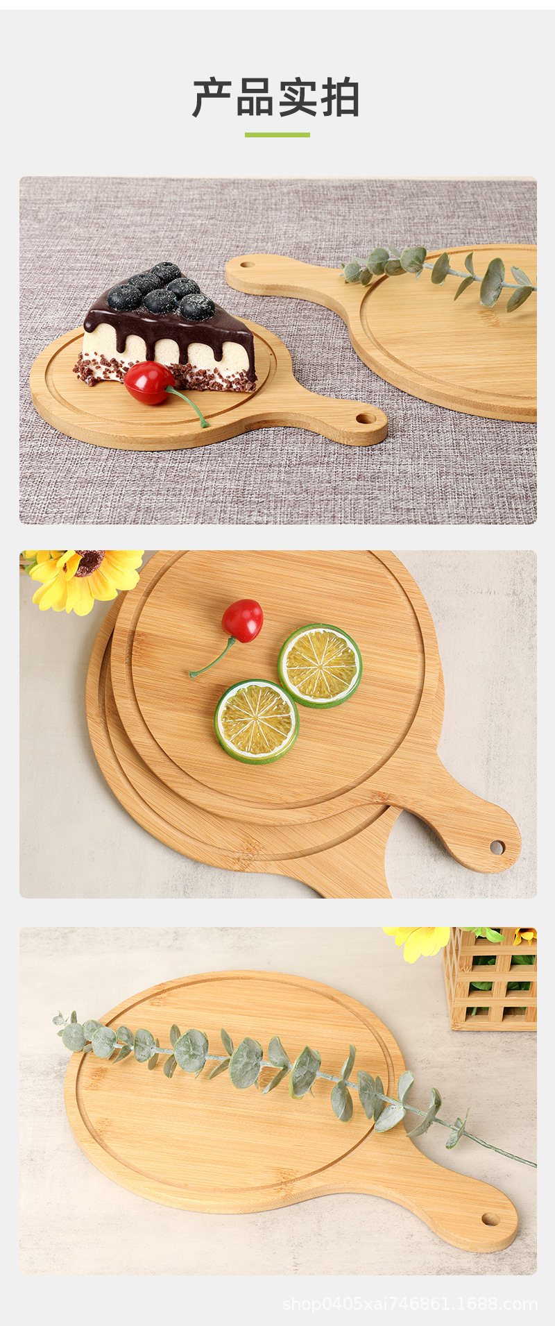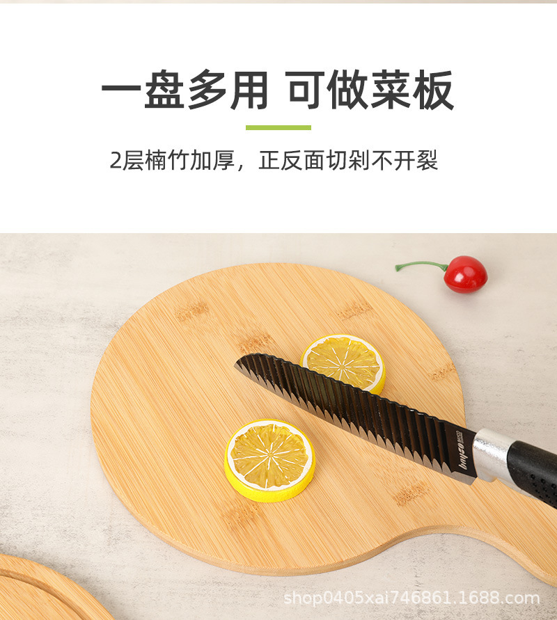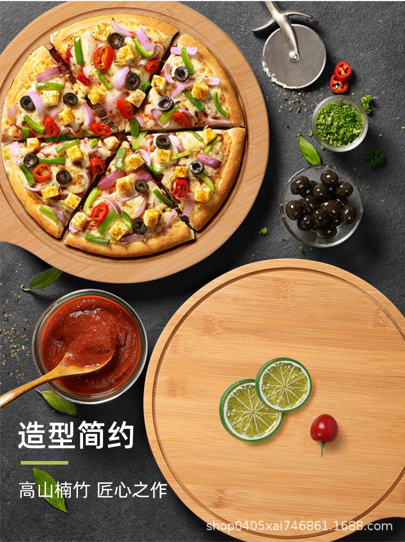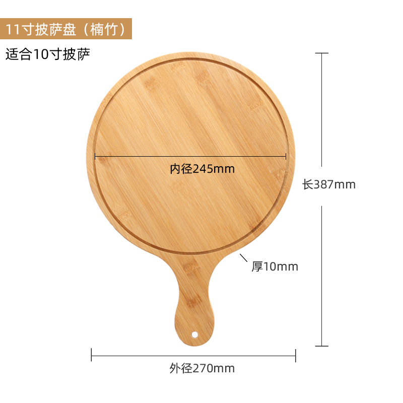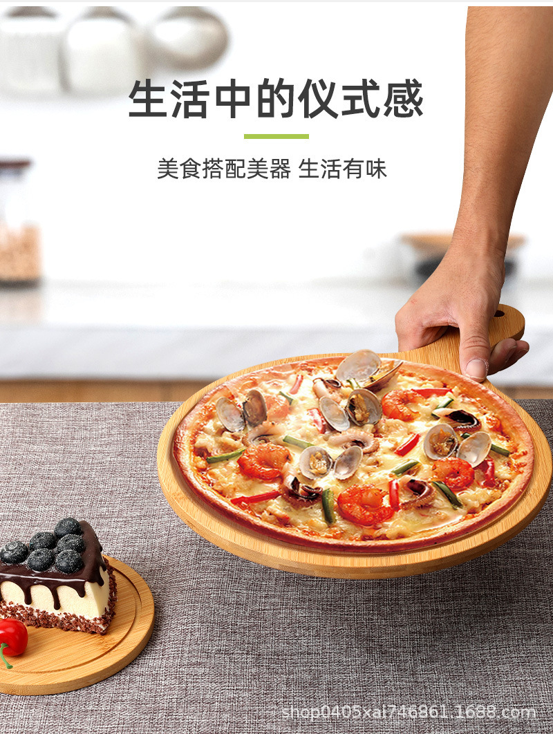 대나무 식당 가정용 주방 둥근 나무 쟁반 손잡이 서양 음식 나무 쟁반 피자 접시 단단한 나무 쟁반스토어 가기