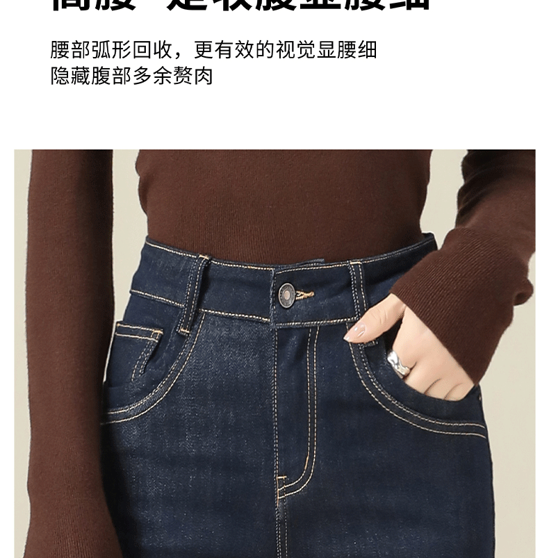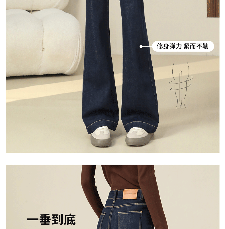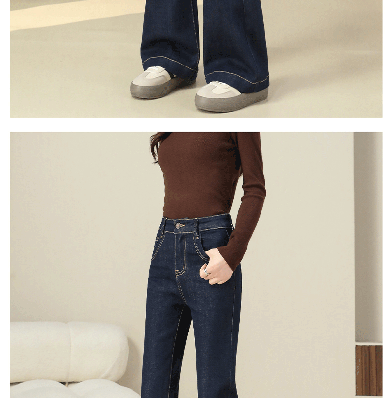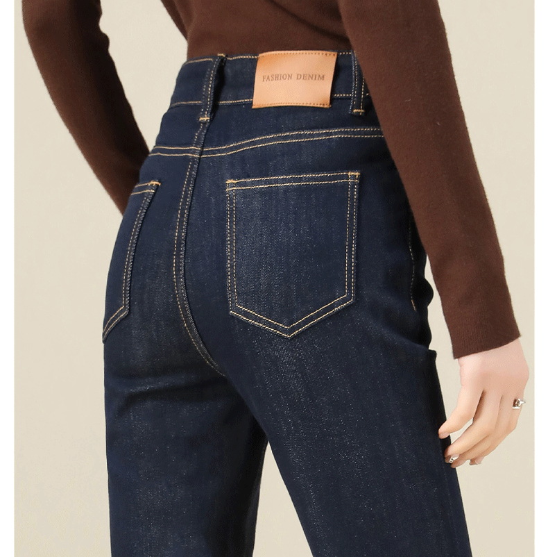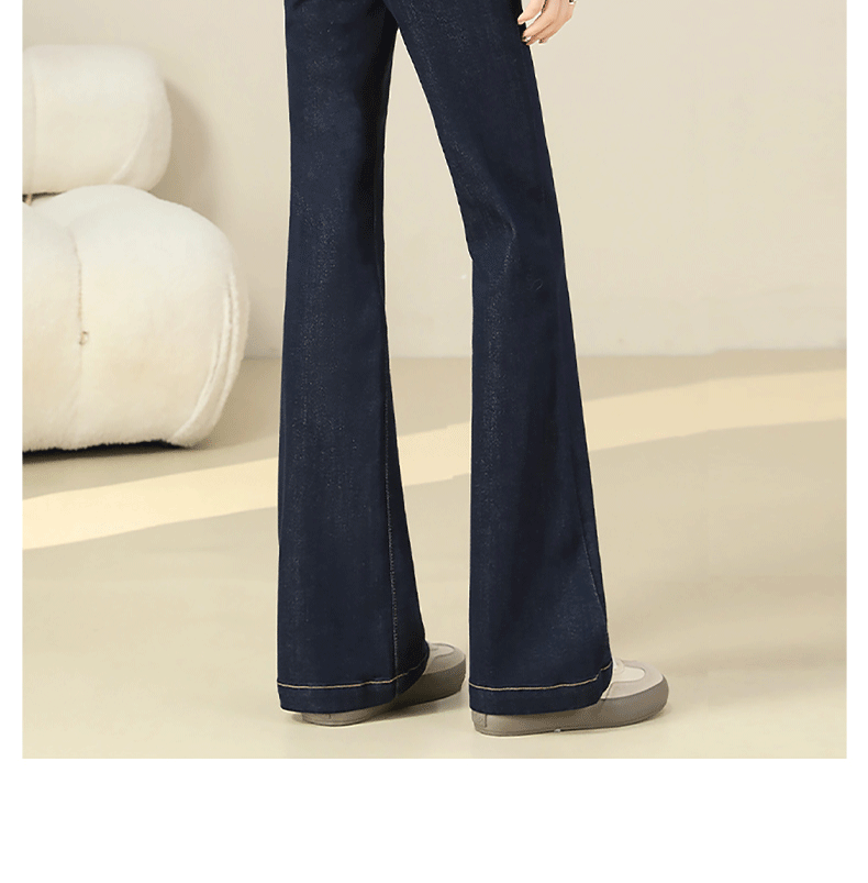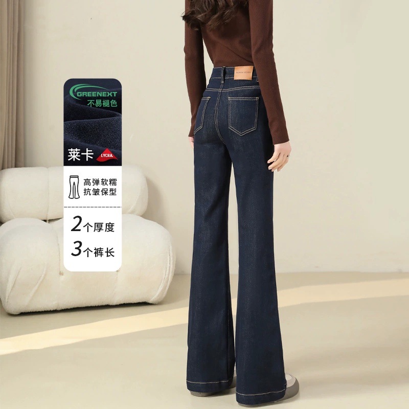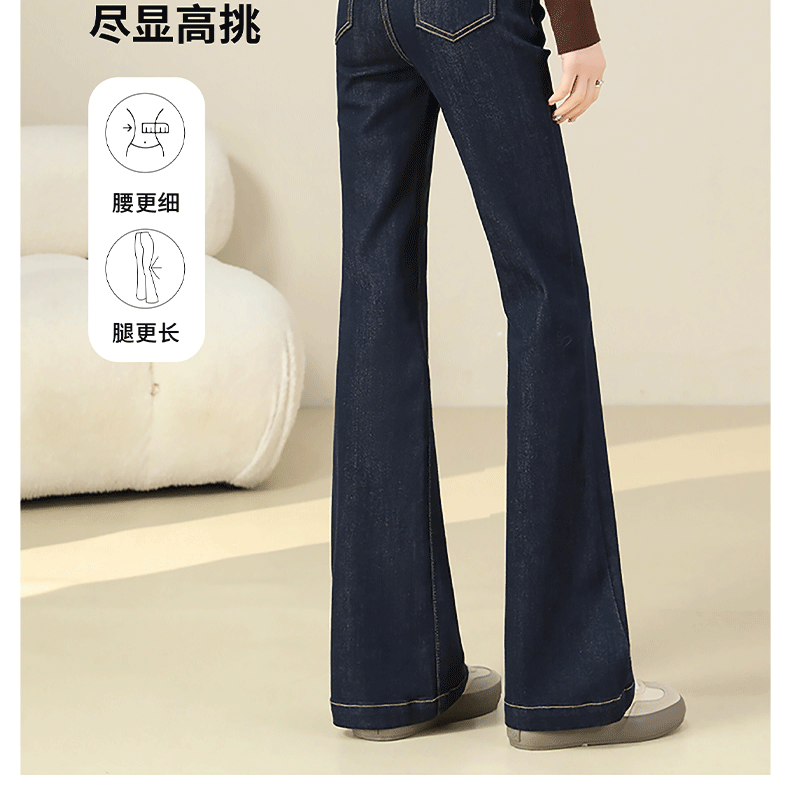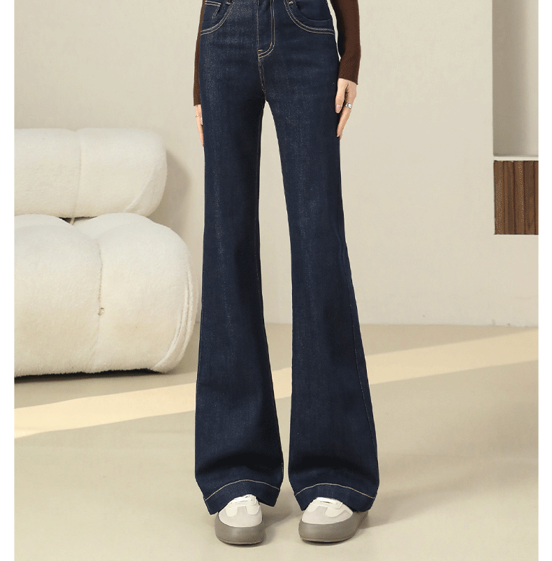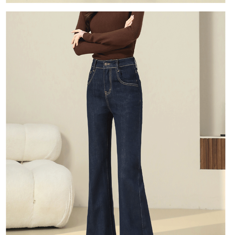 여성용 부츠컷 청바지 가을 겨울 신상 2025년 신상 기모 처리된 진청색 하이웨이스트 소형 청바지 데님 블루 플레어 팬츠스토어 가기