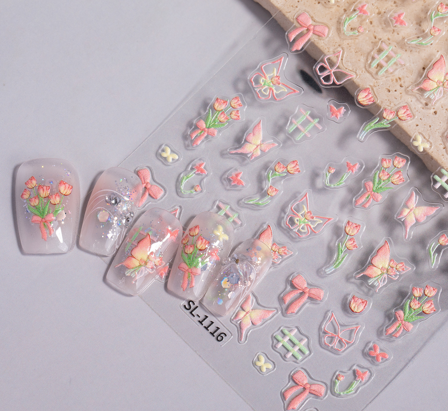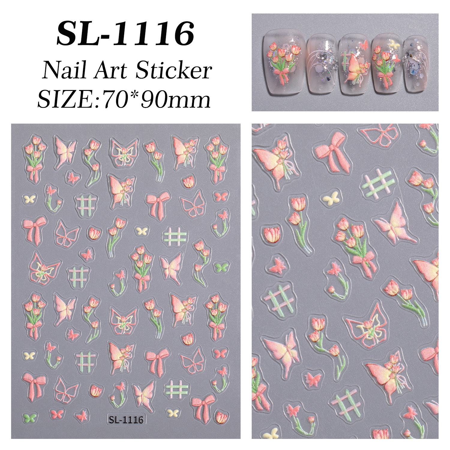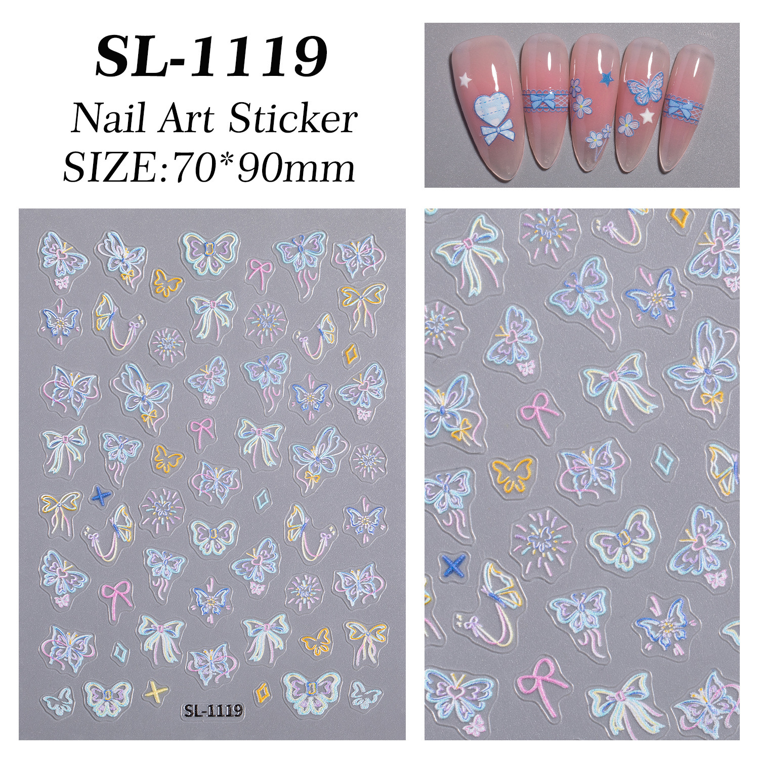 달콤한 멋진 나비 매듭 네일 스티커 5D 양각 귀여운 패션 중공 나비 매듭 네일 아트 스티커 쥬얼리 SL 스타일스토어 가기