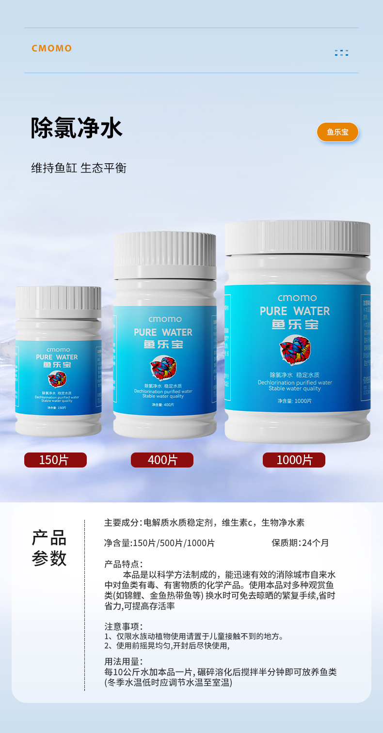 25년 신형 정수제, 가정용 어항, 빠른 염소 제거, 어류 무해 정화, 수질 안정제, 정수정